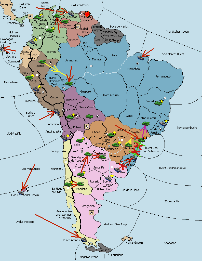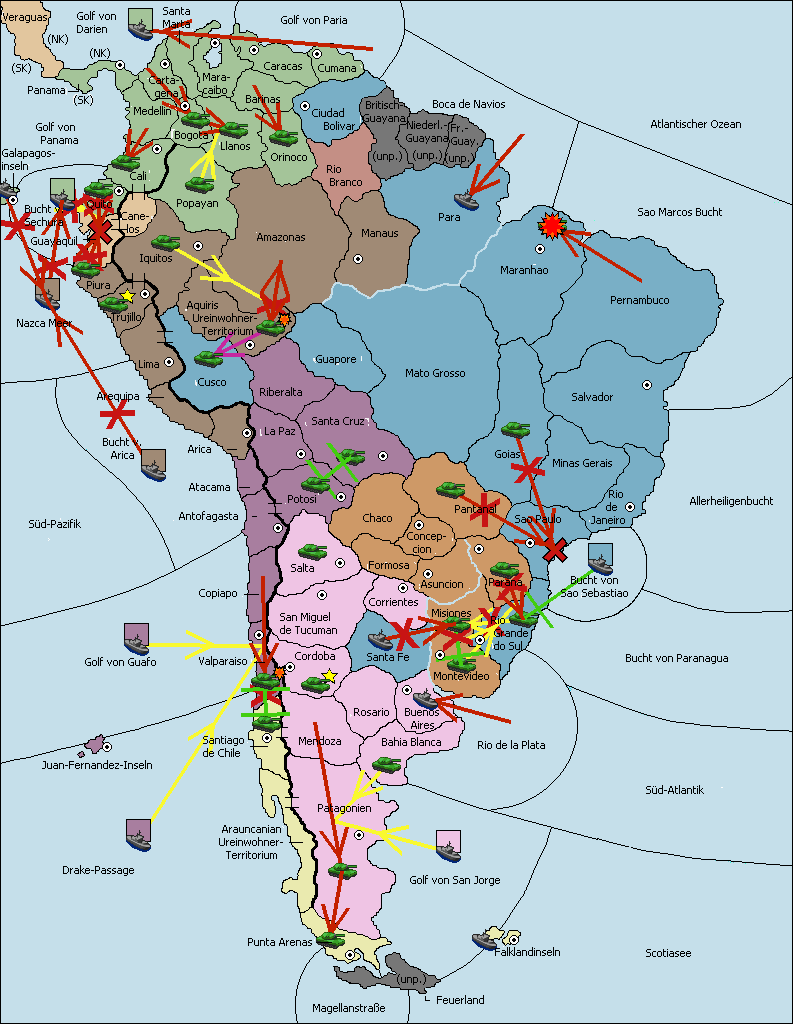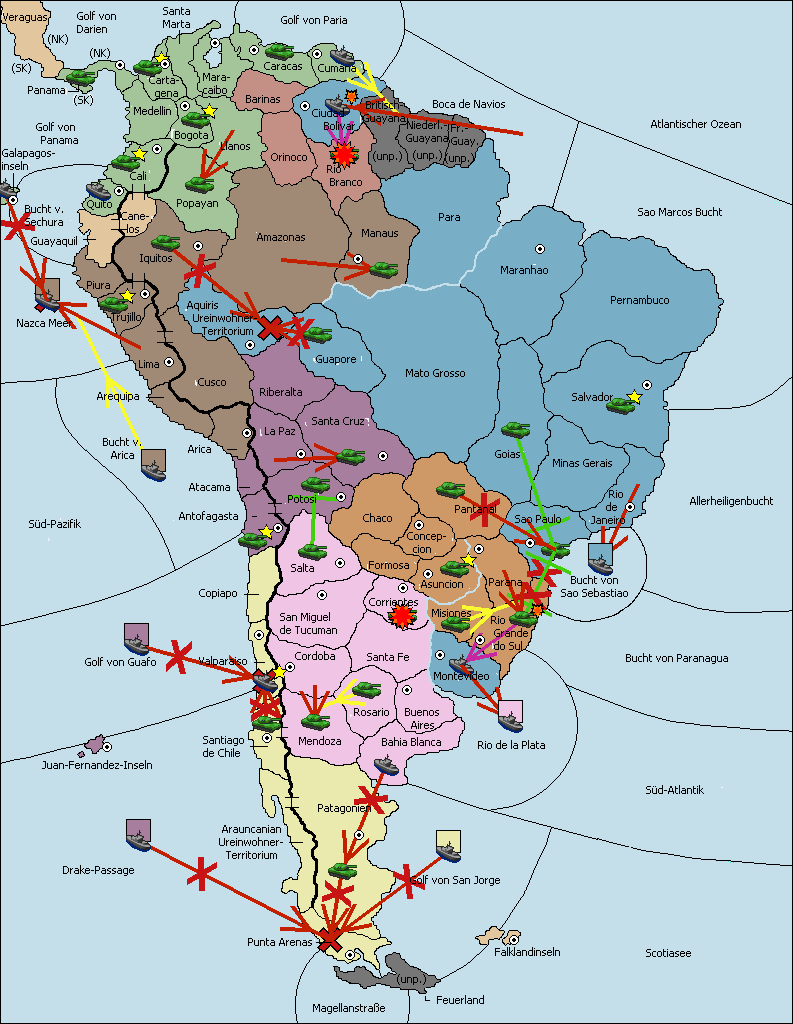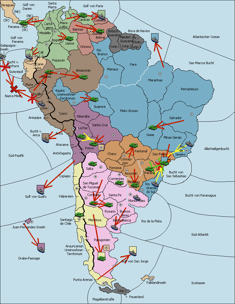 • Die Armee in Sao Paulo wird zerstörtFlotte in Sao Paulo gebaut.