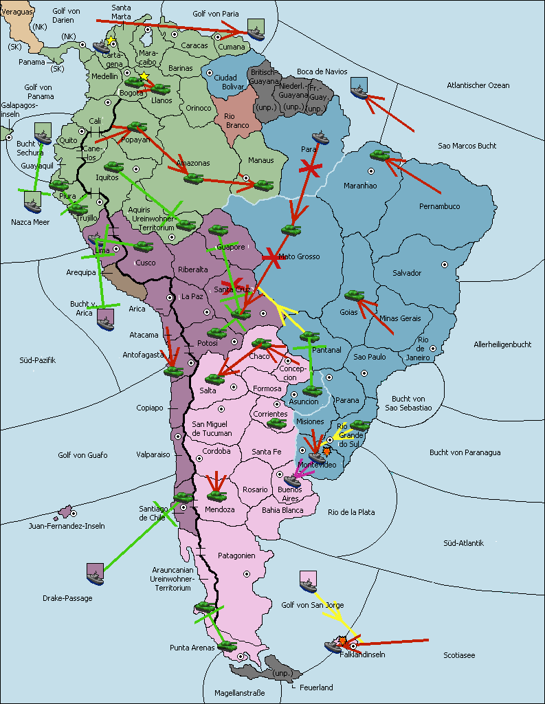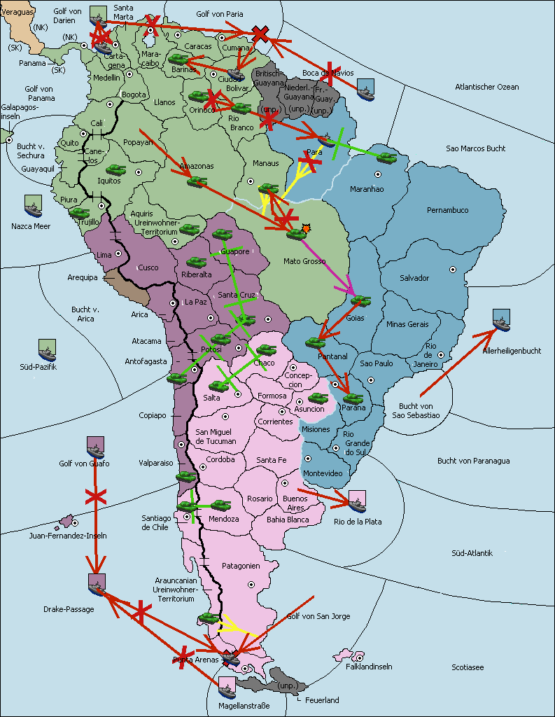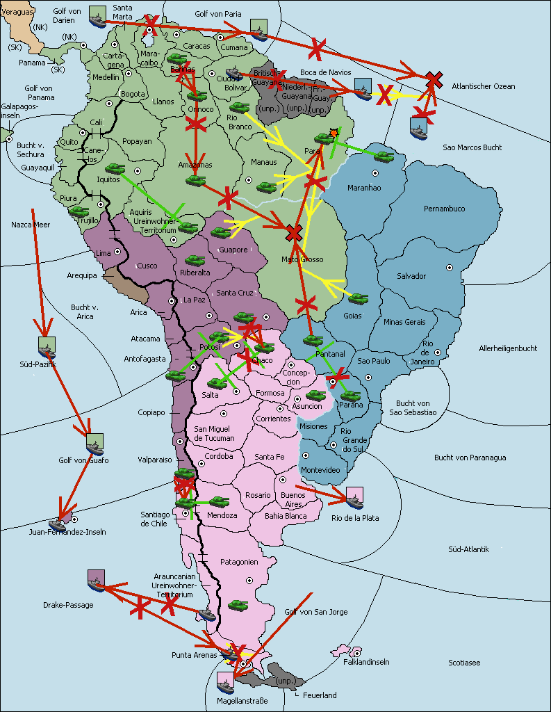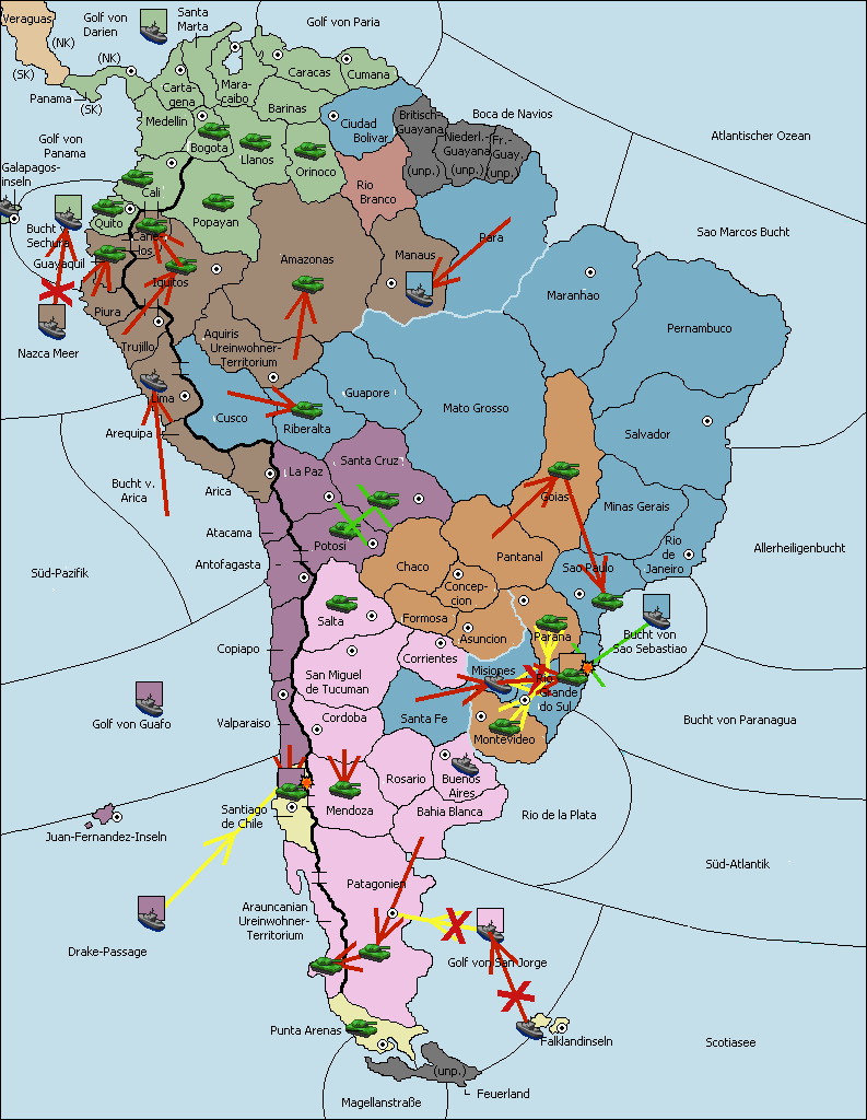 • Die Armee in Sao Paulo wird zerstörtFlotte in Sao Paulo gebaut.