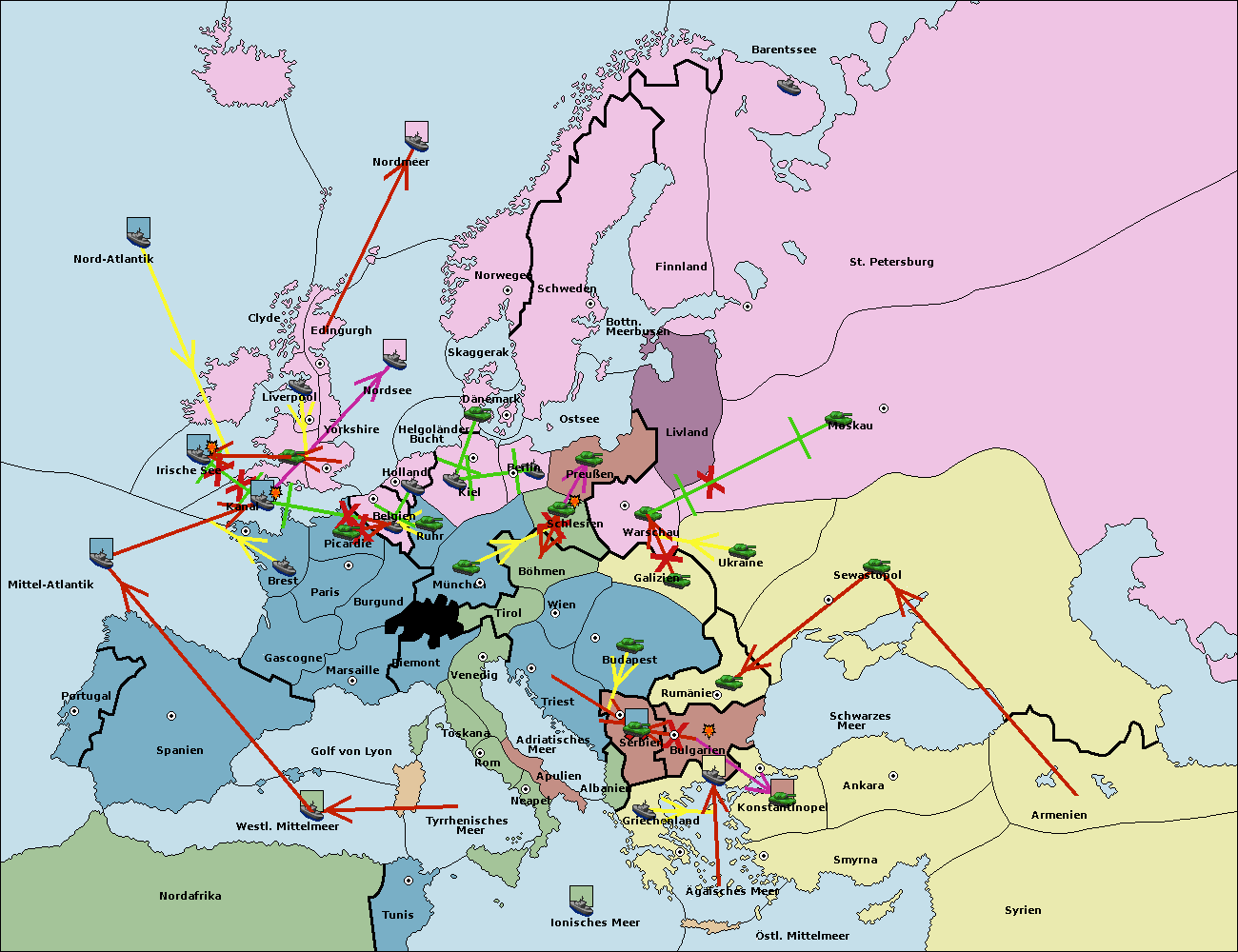 • Die Armee in Konstantinopel support hold nach Bulgarien.