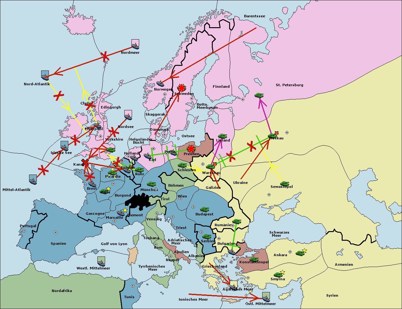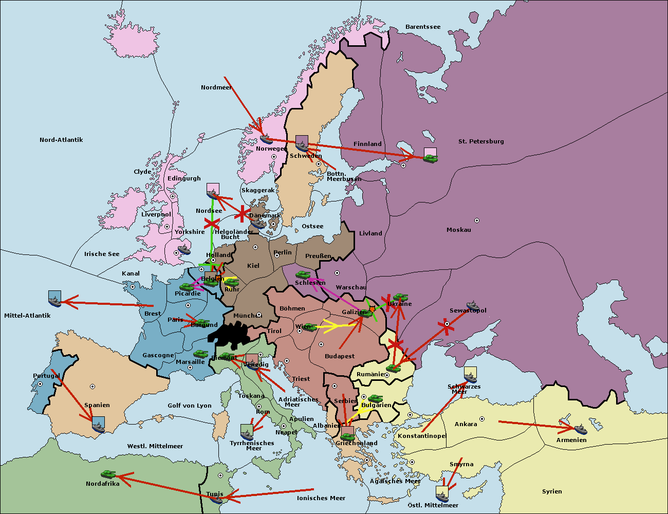 • Die Armee in Nord Afrika move nach Tunis. (gescheitert)