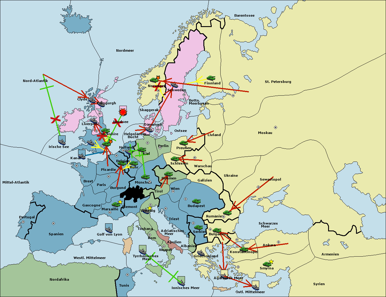 • Die Flotte in Nordsee support hold nach London. (gescheitert)