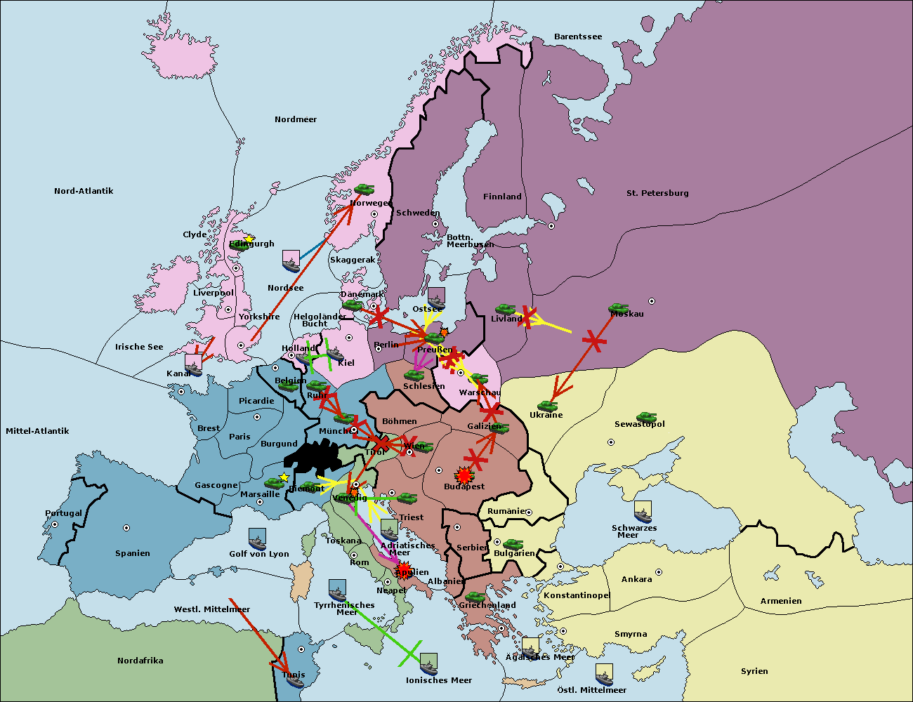 • Die Armee in Wien support move nach Galizien von Budapest.