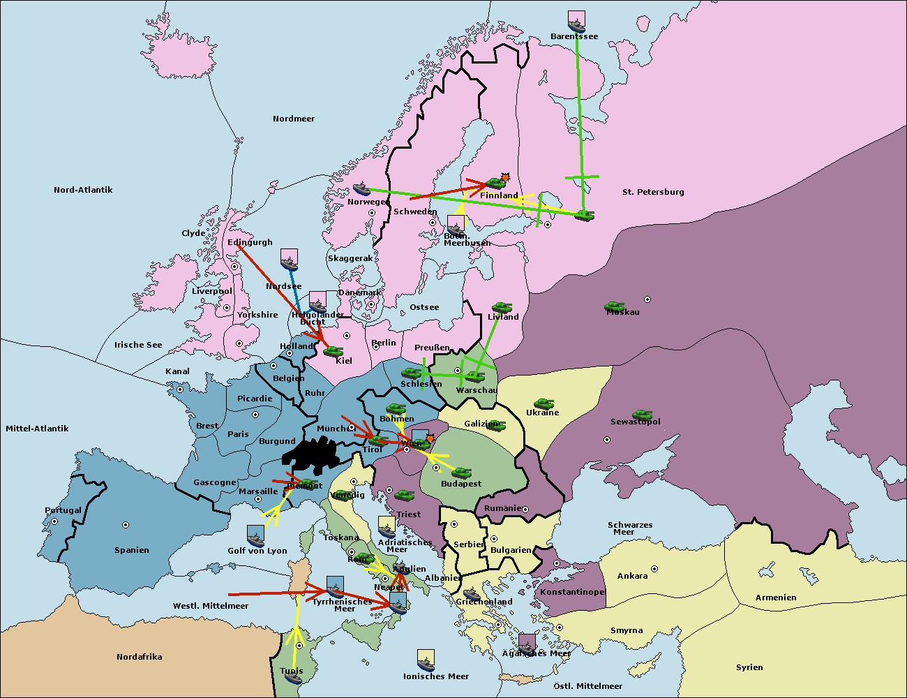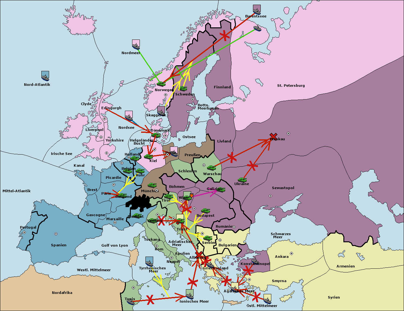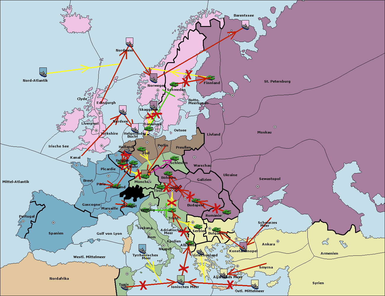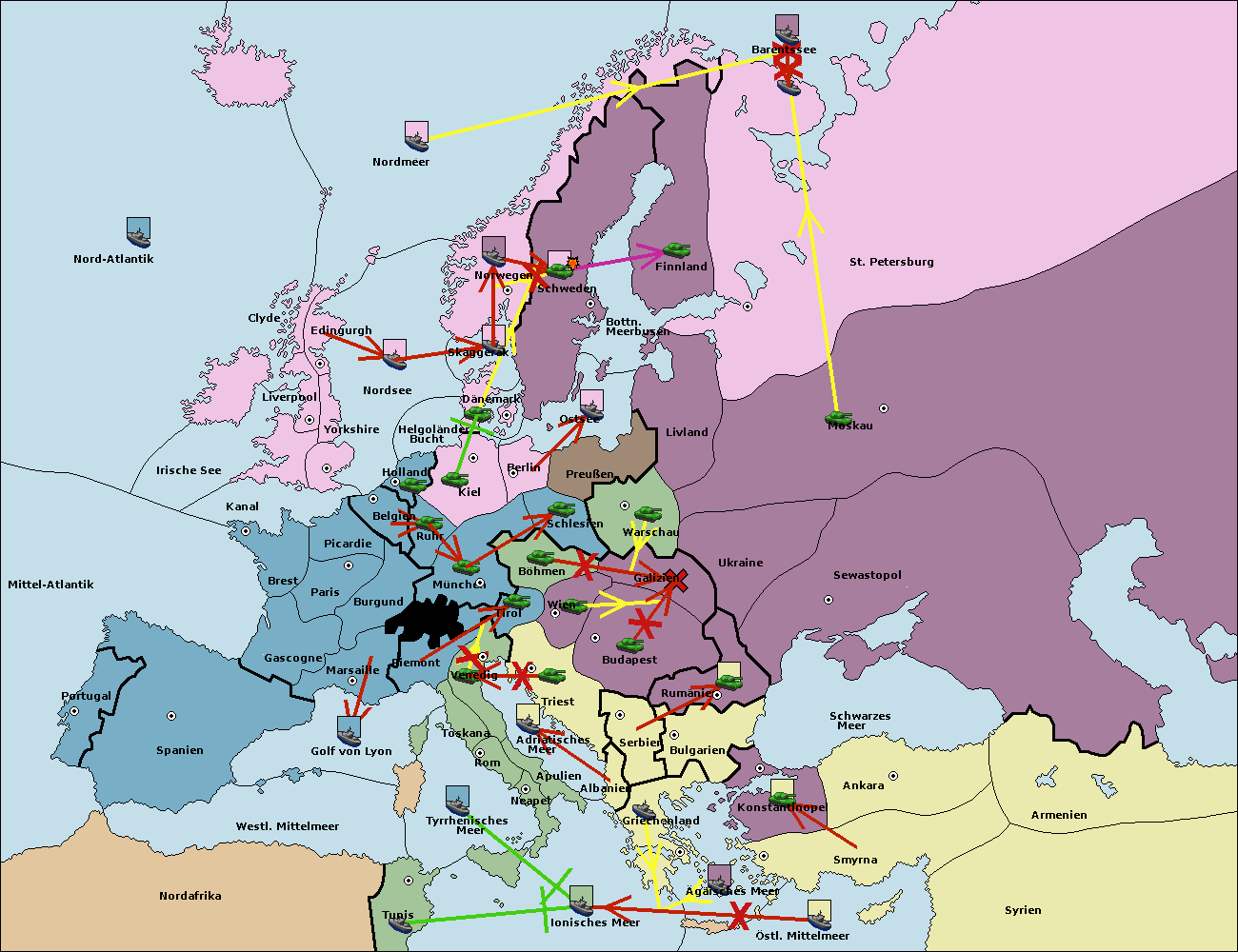 • Die Armee in München support move nach Kiel von Dänemark. (gescheitert)