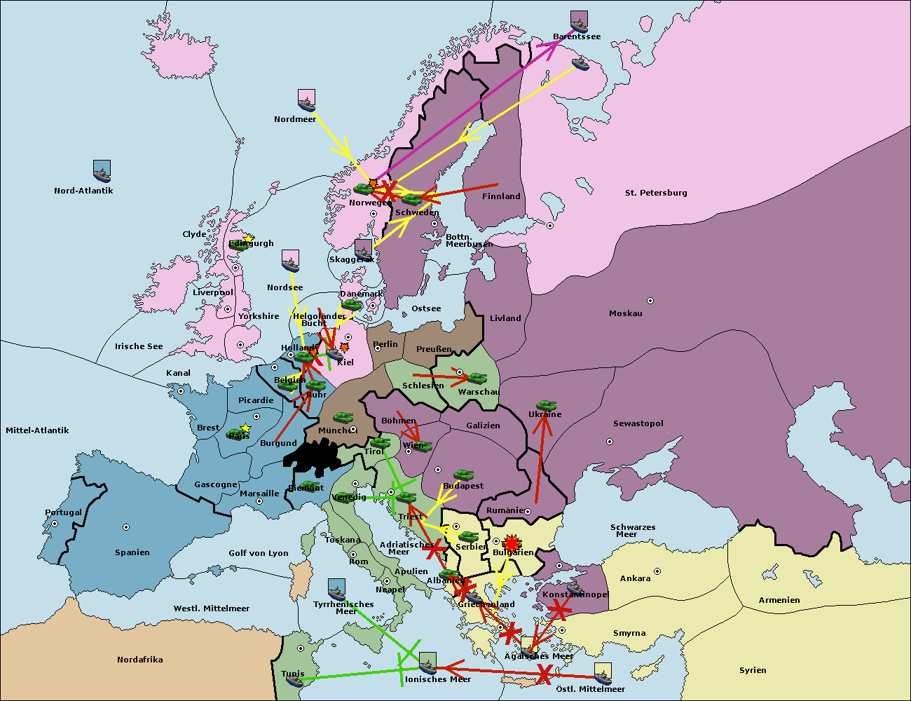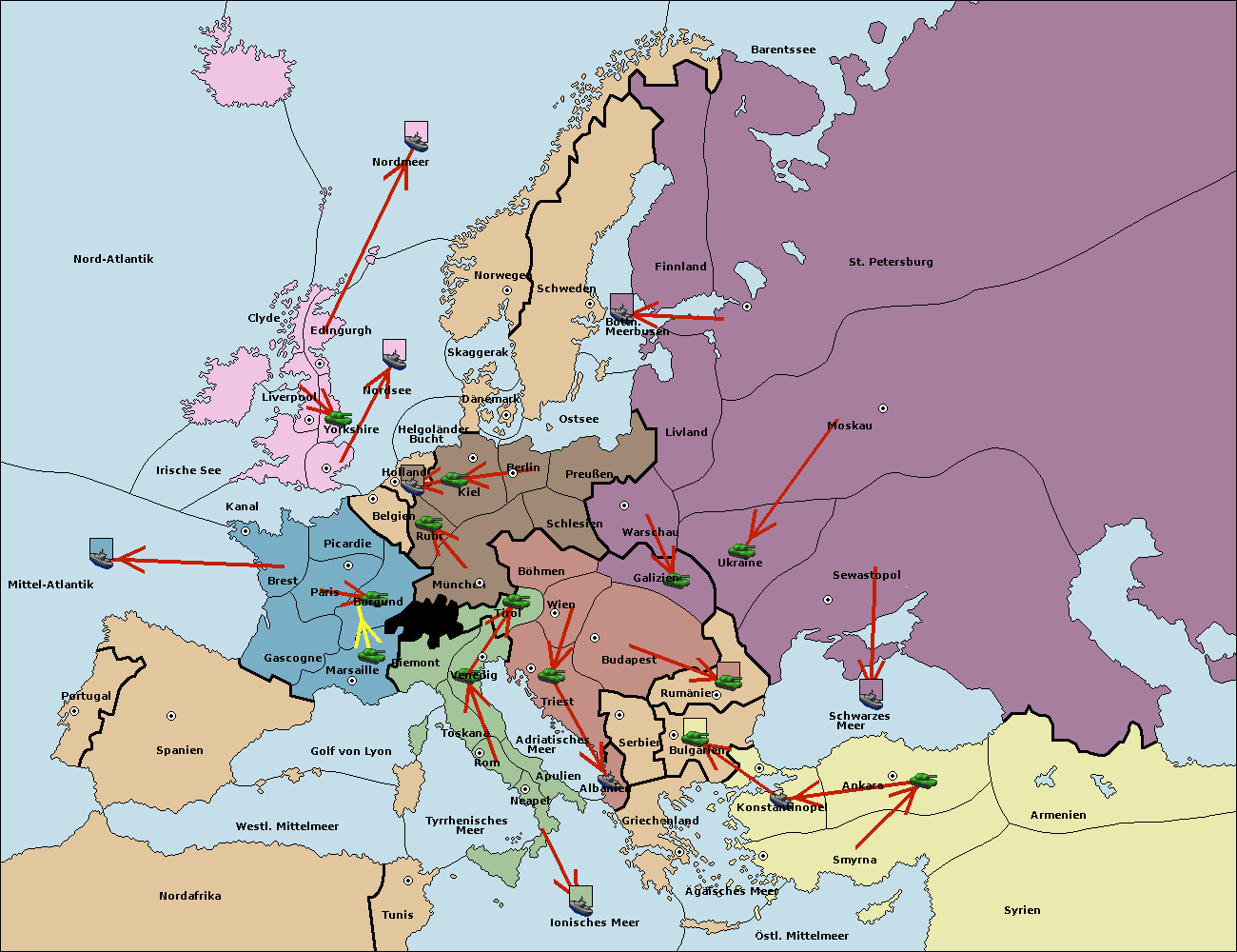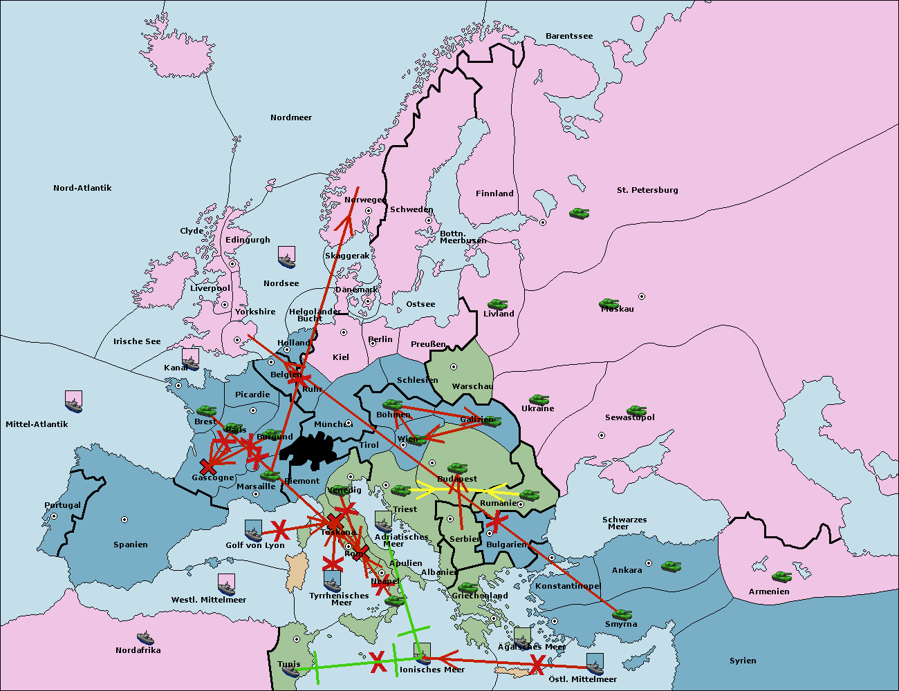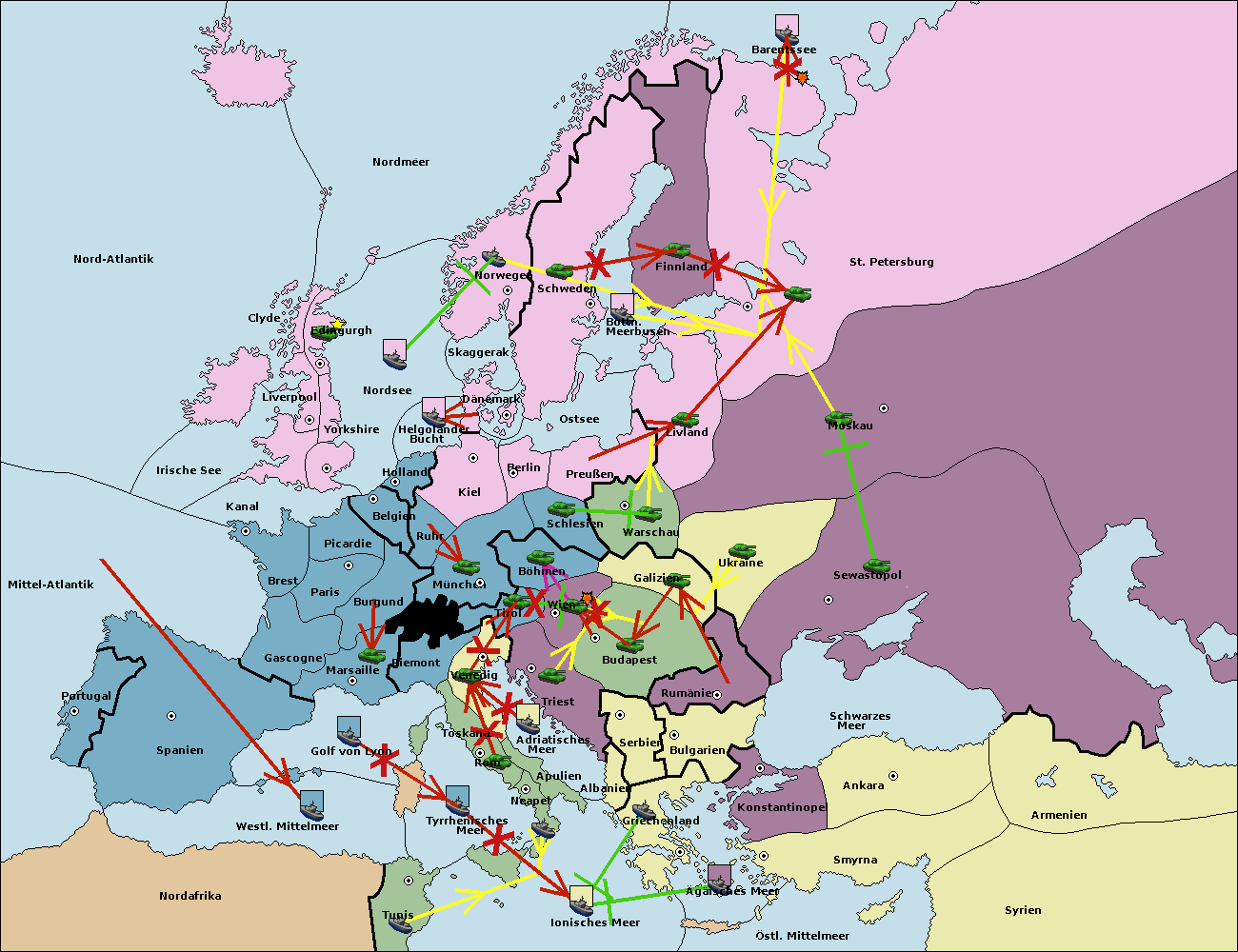 • Die Armee in München support move nach Kiel von Dänemark. (gescheitert)