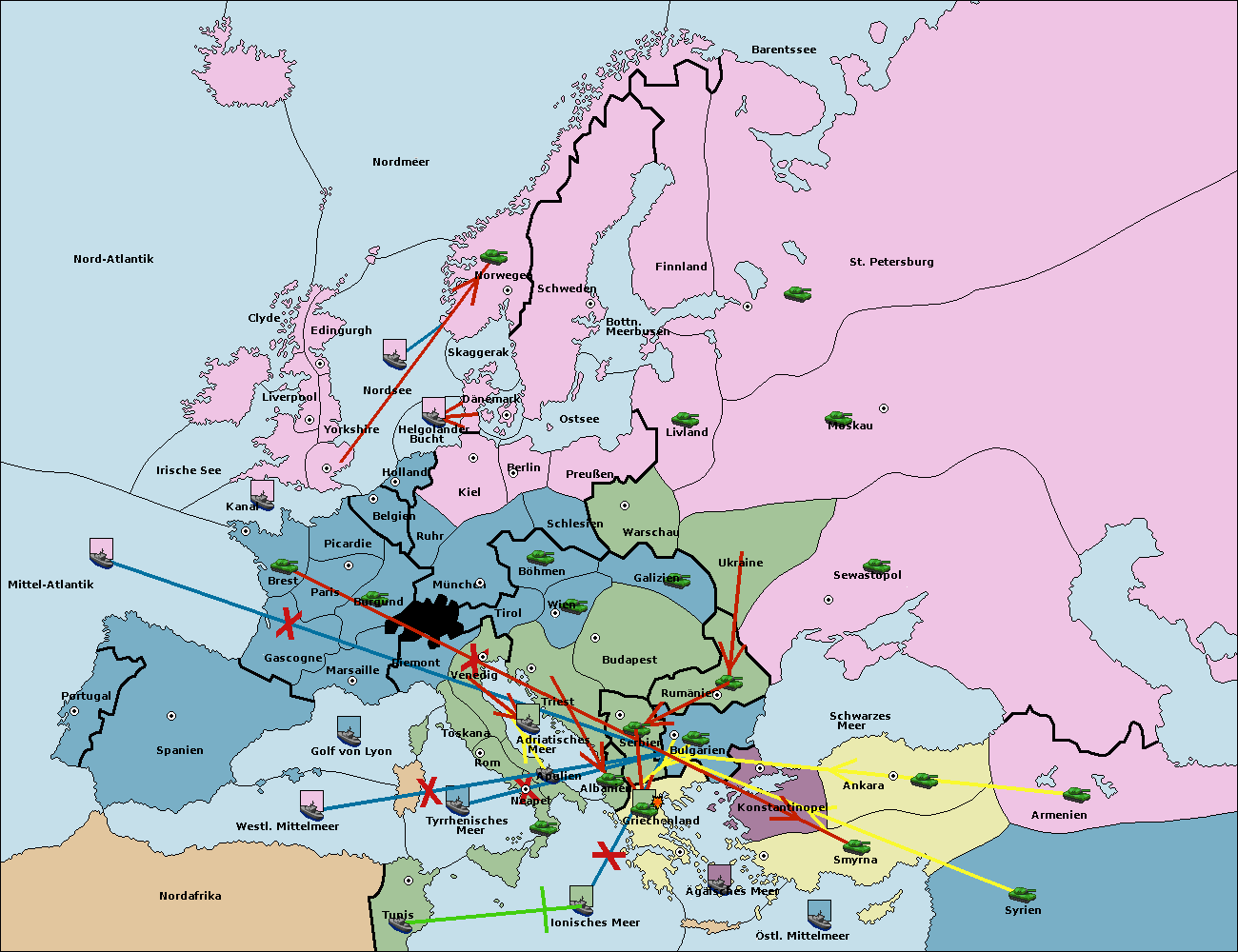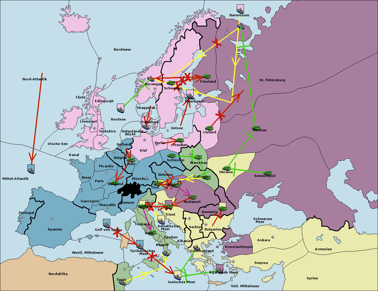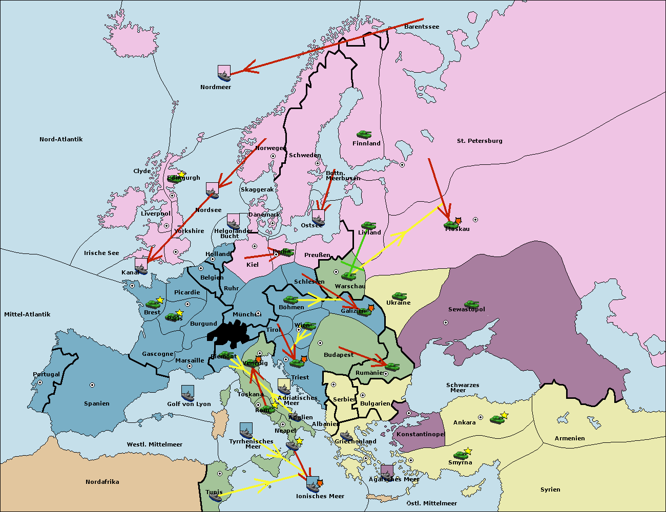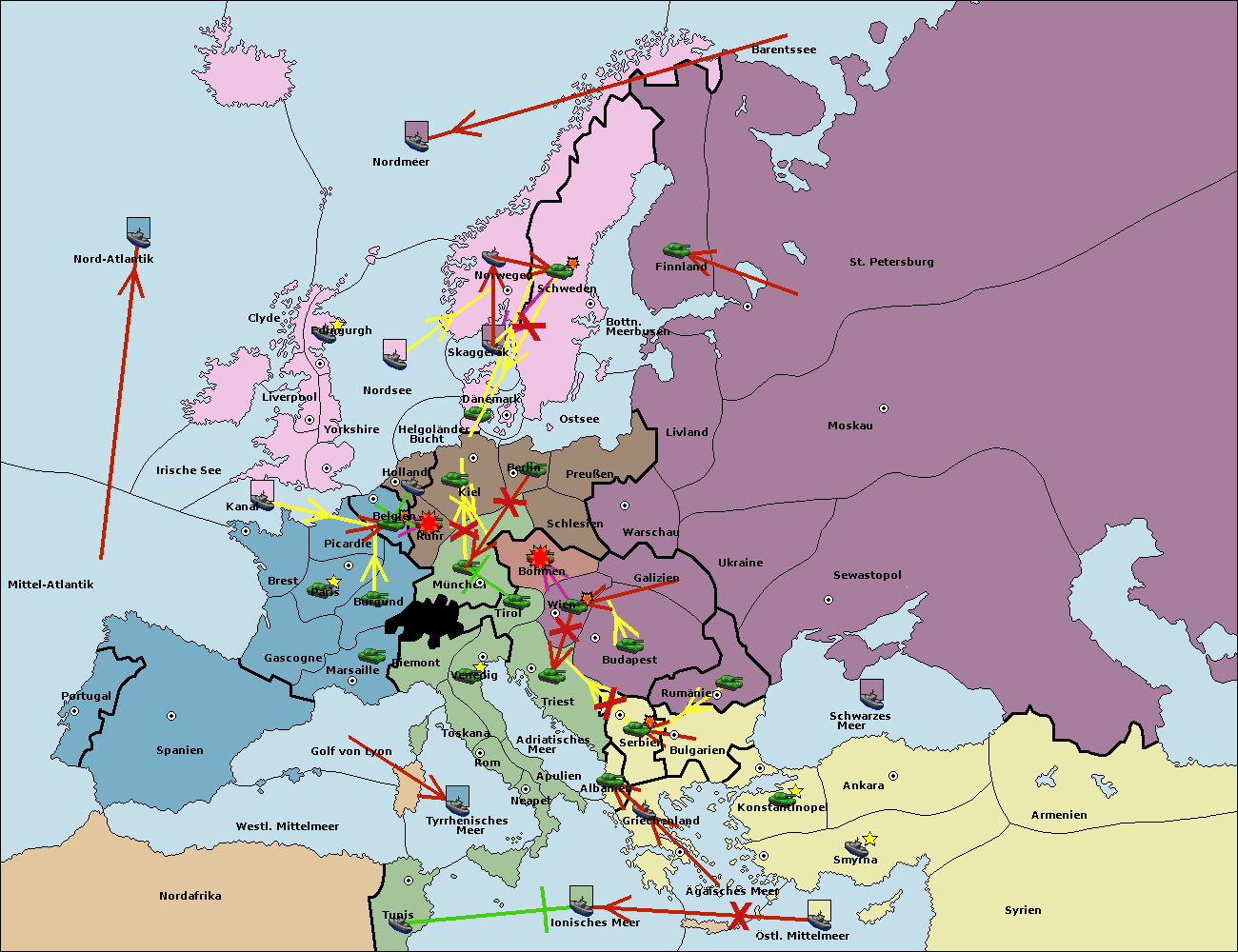 • Die Armee in München support move nach Kiel von Dänemark. (gescheitert)