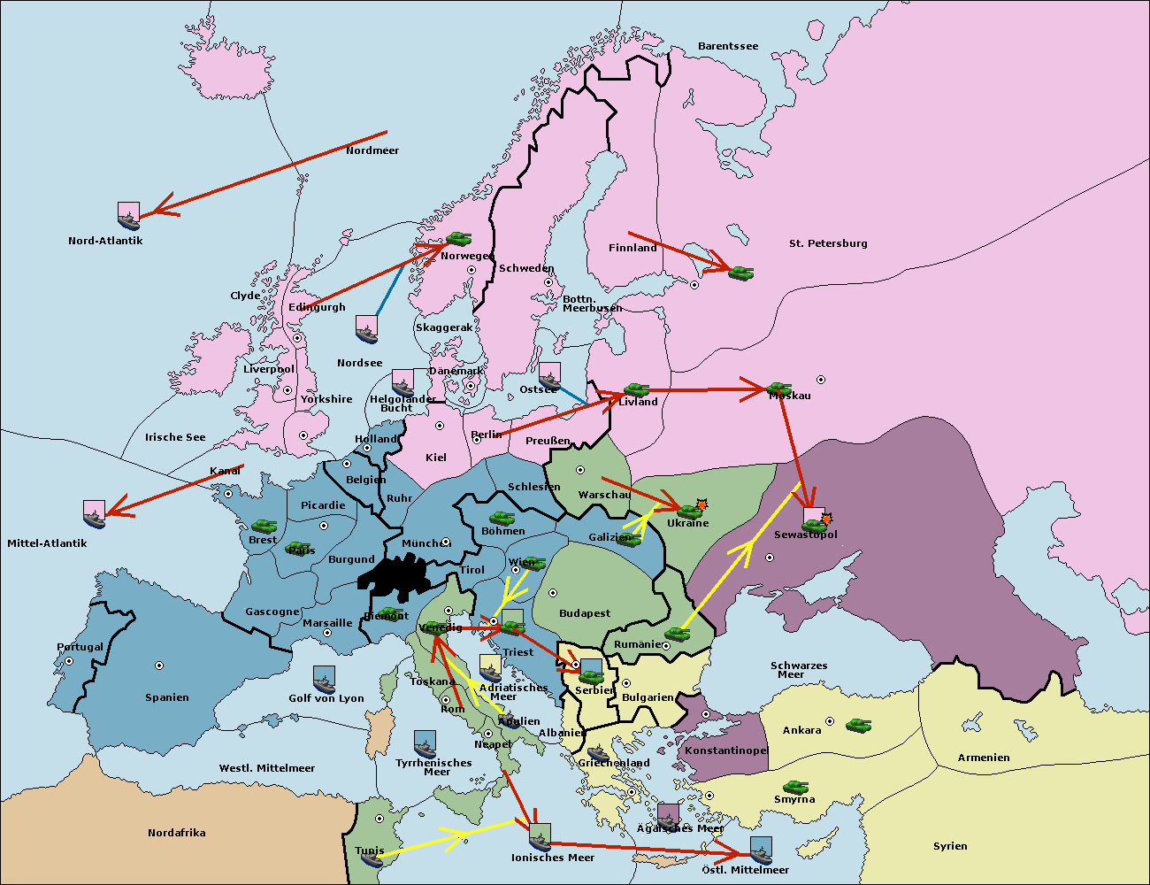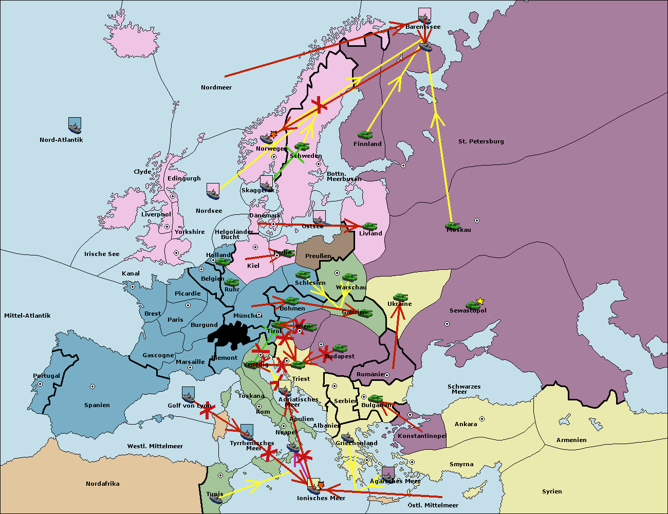 • Die Flotte in St. Petersburg (Nordküste) move nach Barentssee.
