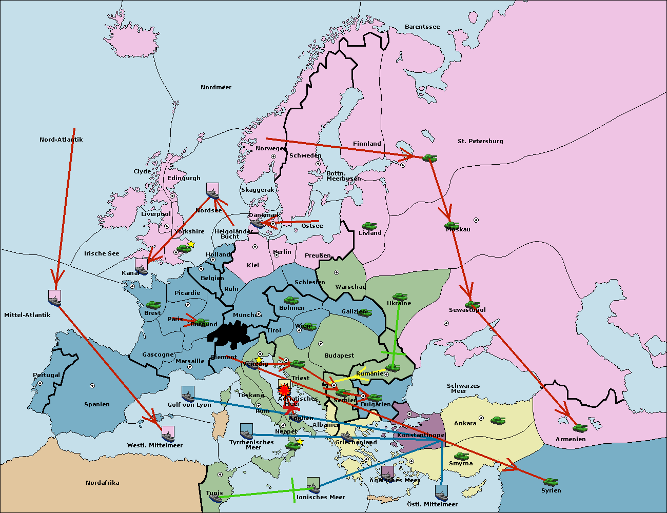 • Die Armee in Triest support move nach Budapest von Serbien.