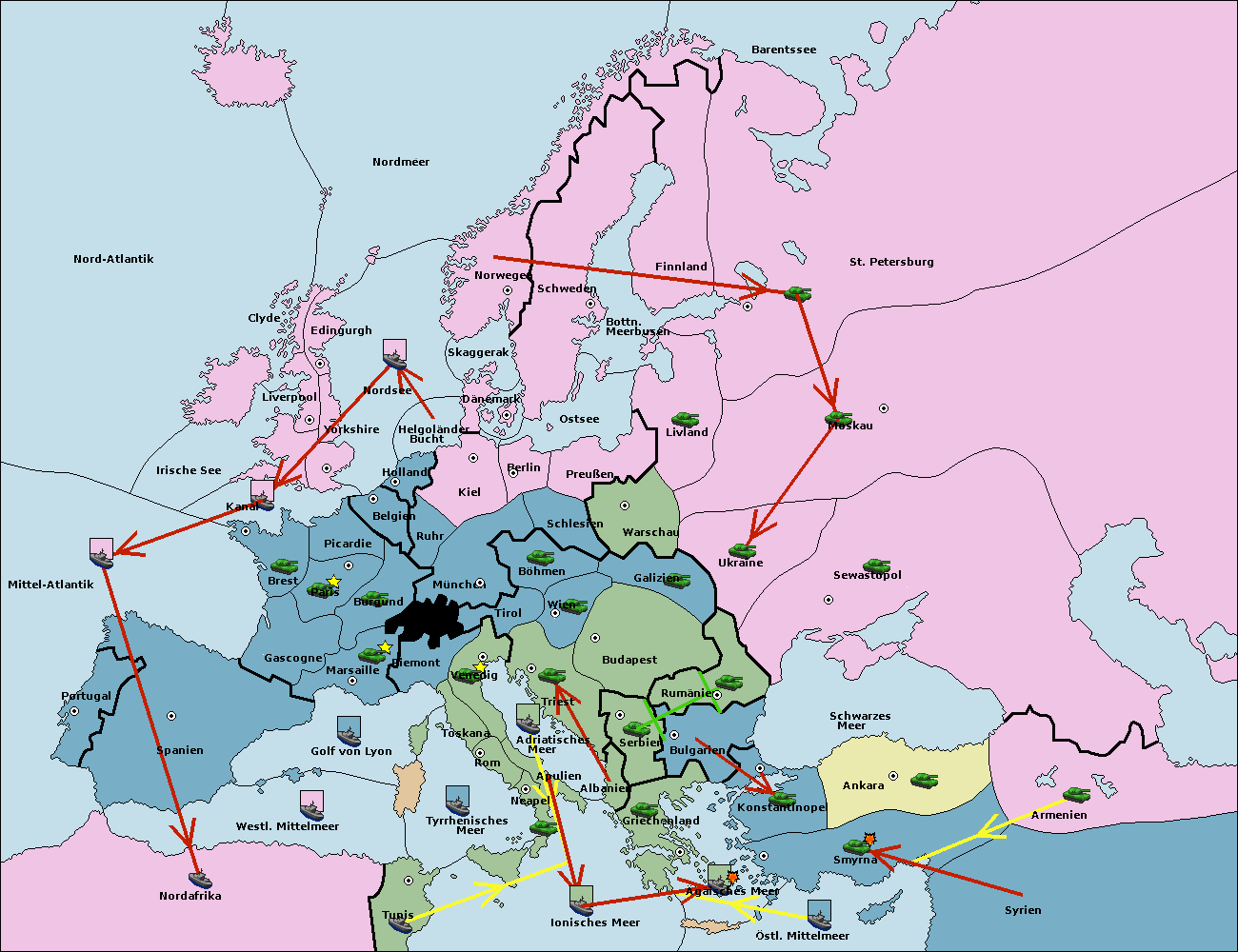 • Die Armee in Smyrna move nach London via Concoy. (gescheitert)