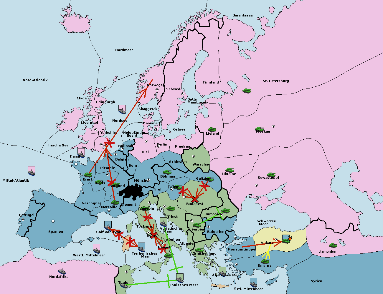 • Die Armee in Ankara wird zerstörtFlotte in Ankara gebaut.