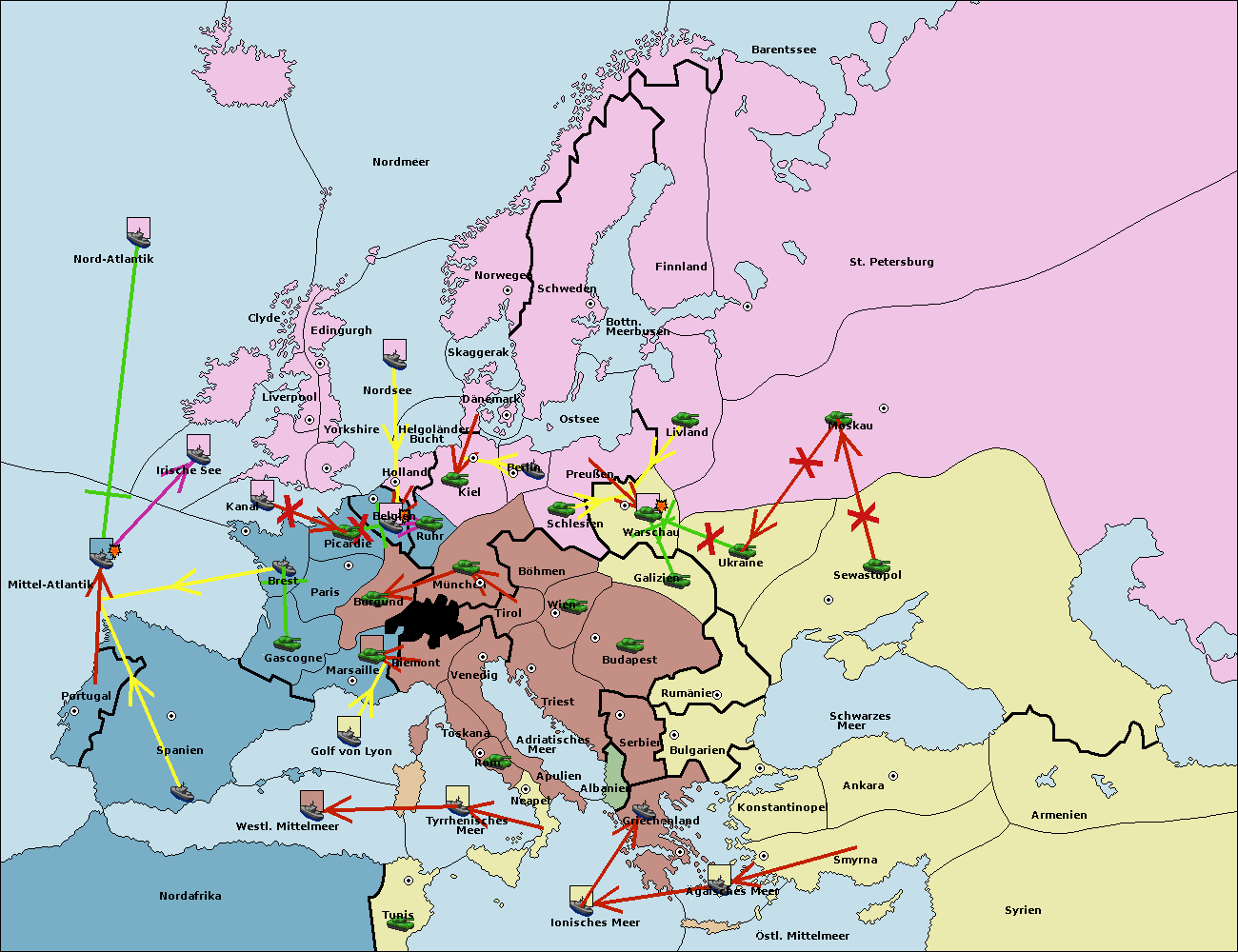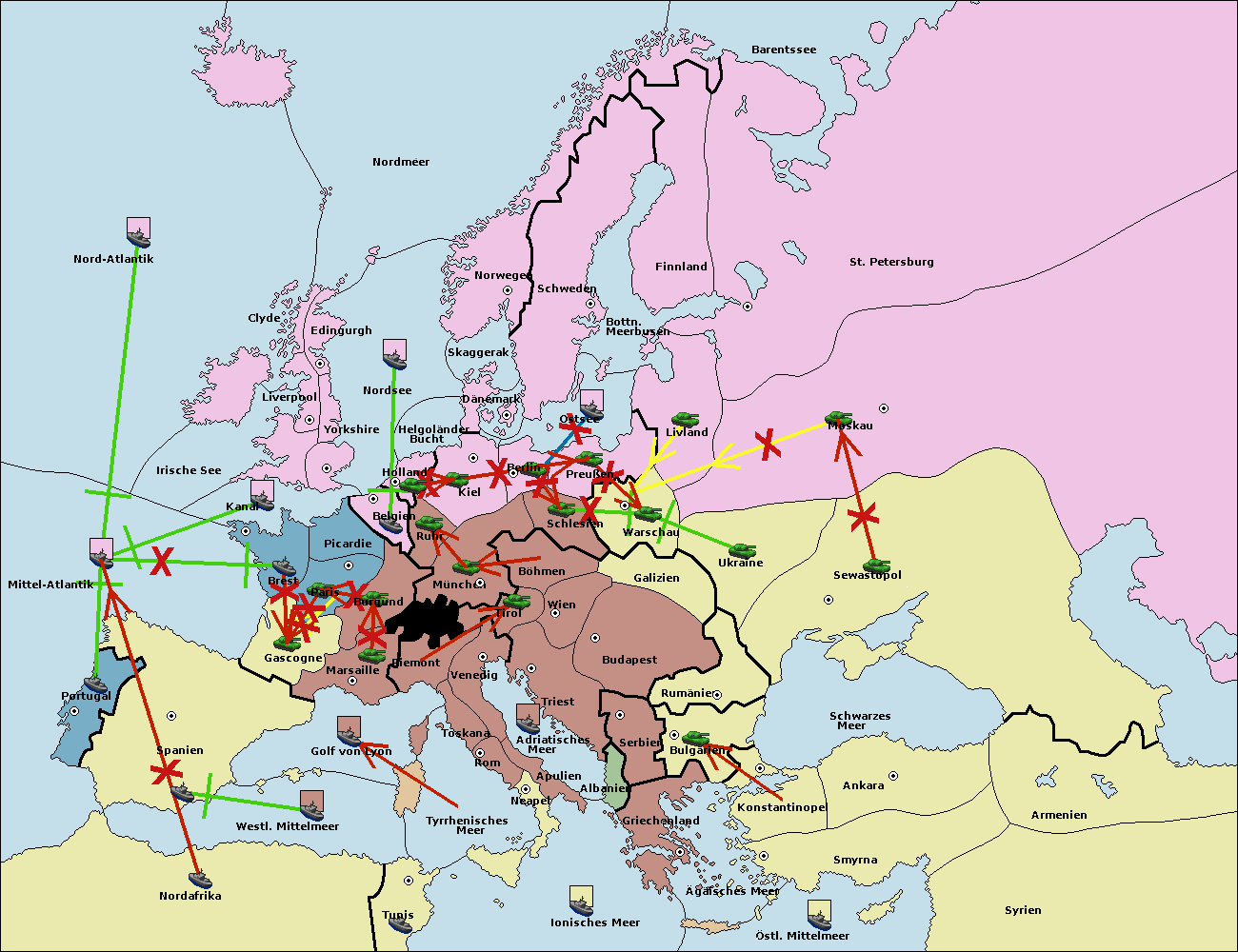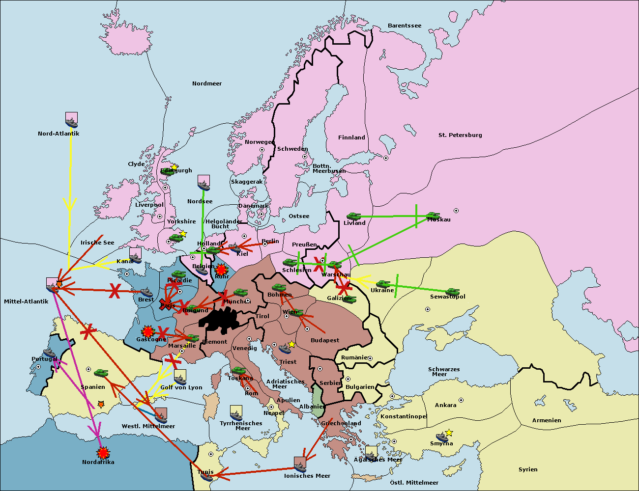 • Die Flotte in Nord Afrika support move nach Mittel-Atlantik von westl. Mittelmeer. (gescheitert)