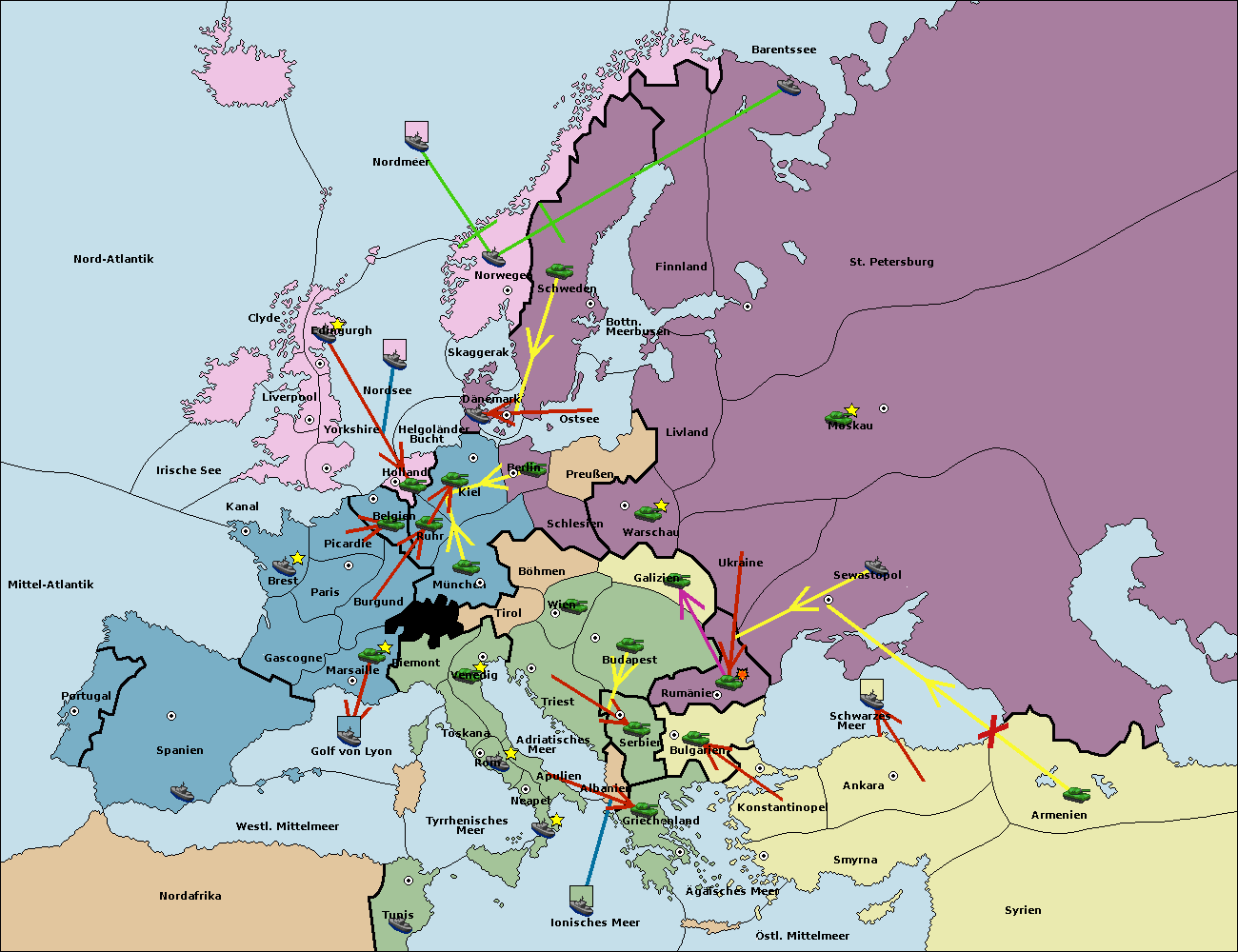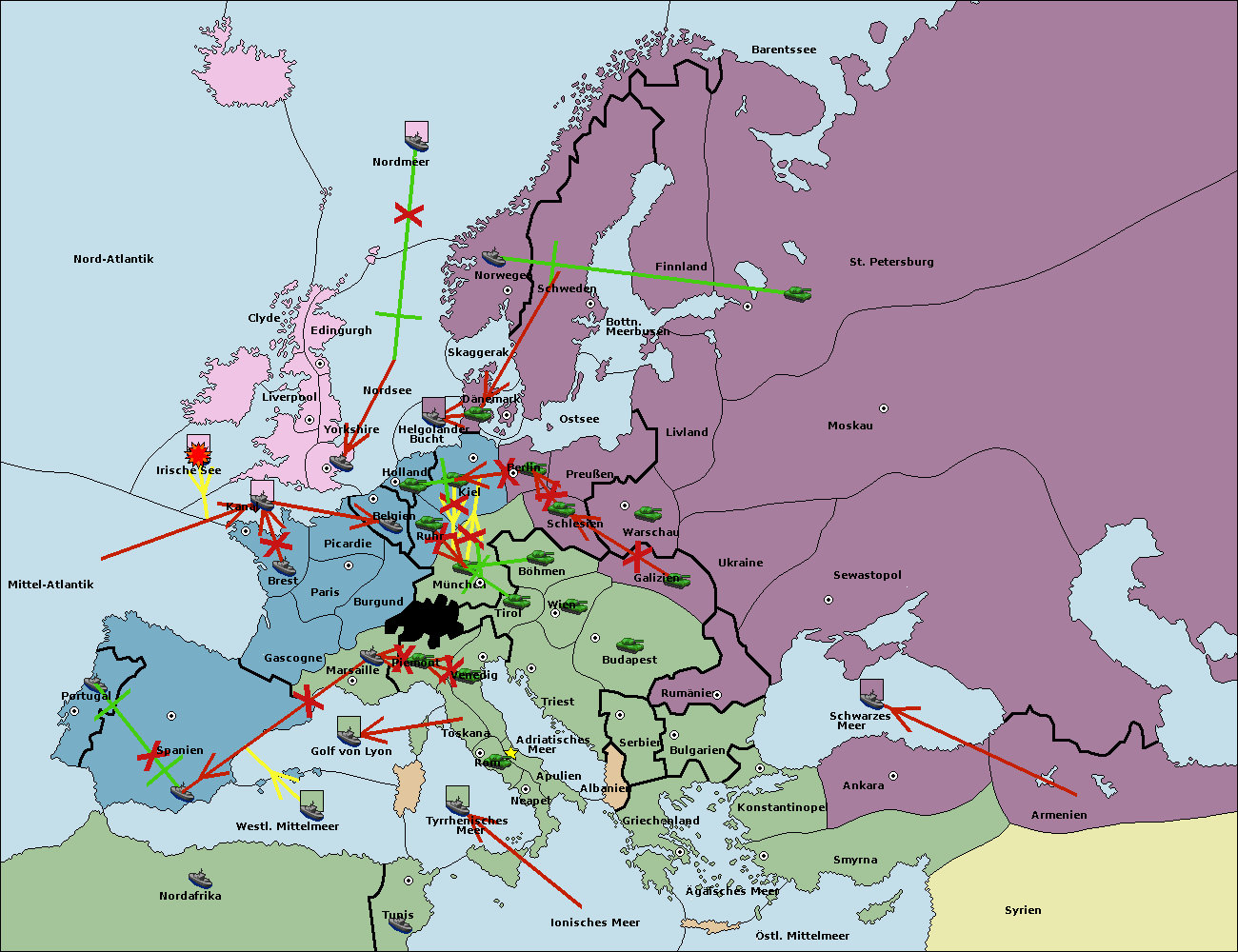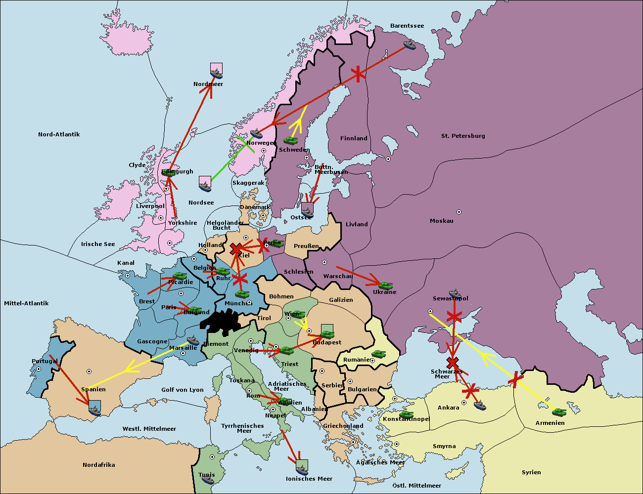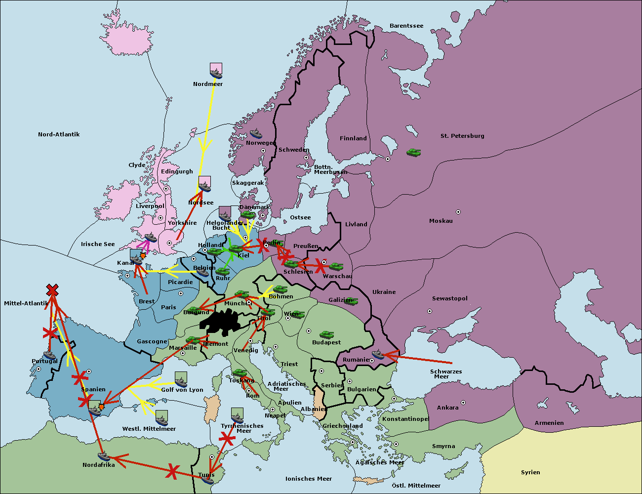 • Die Flotte in Spanien (Südküste) support move nach Mittel-Atlantik von westl. Mittelmeer.