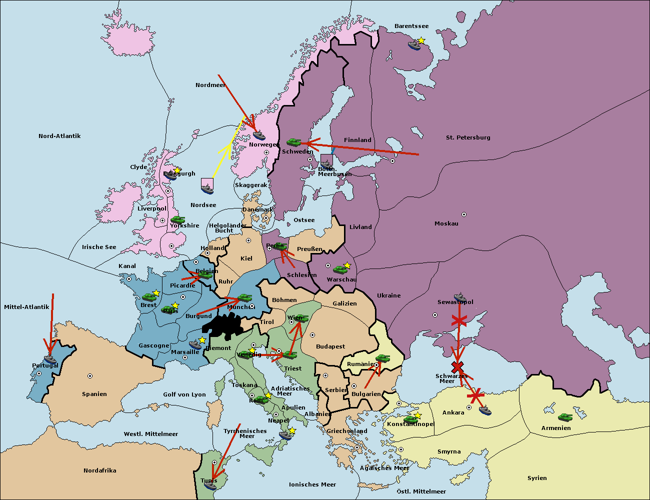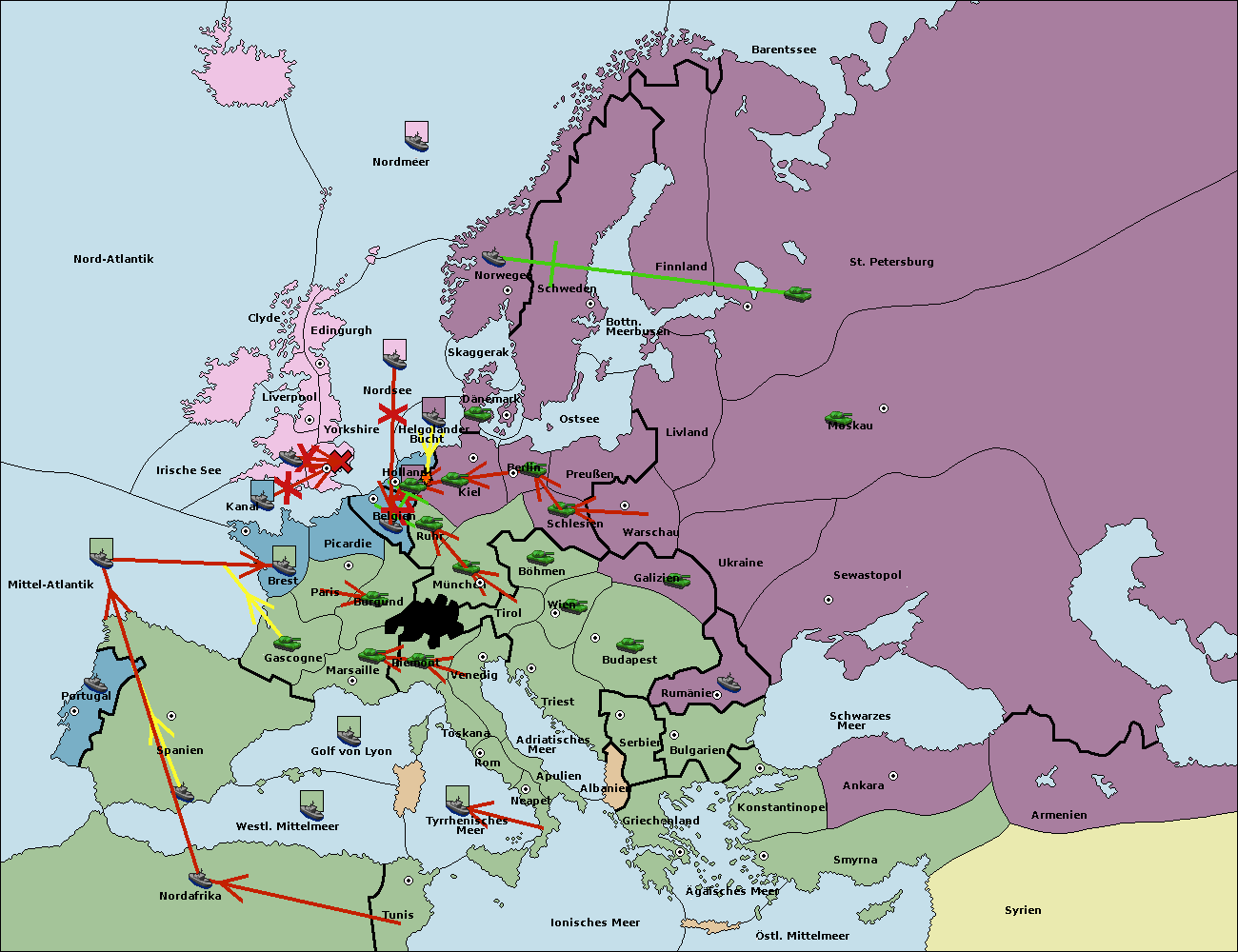 • Die Flotte in St. Petersburg (Nordküste) move nach Norwegen. (gescheitert)