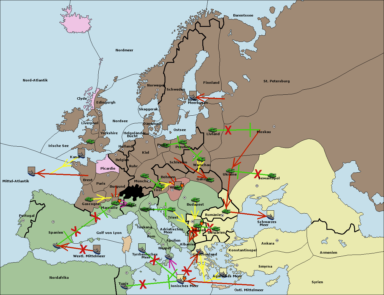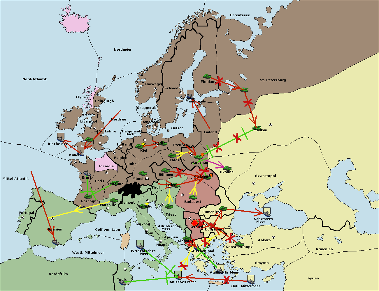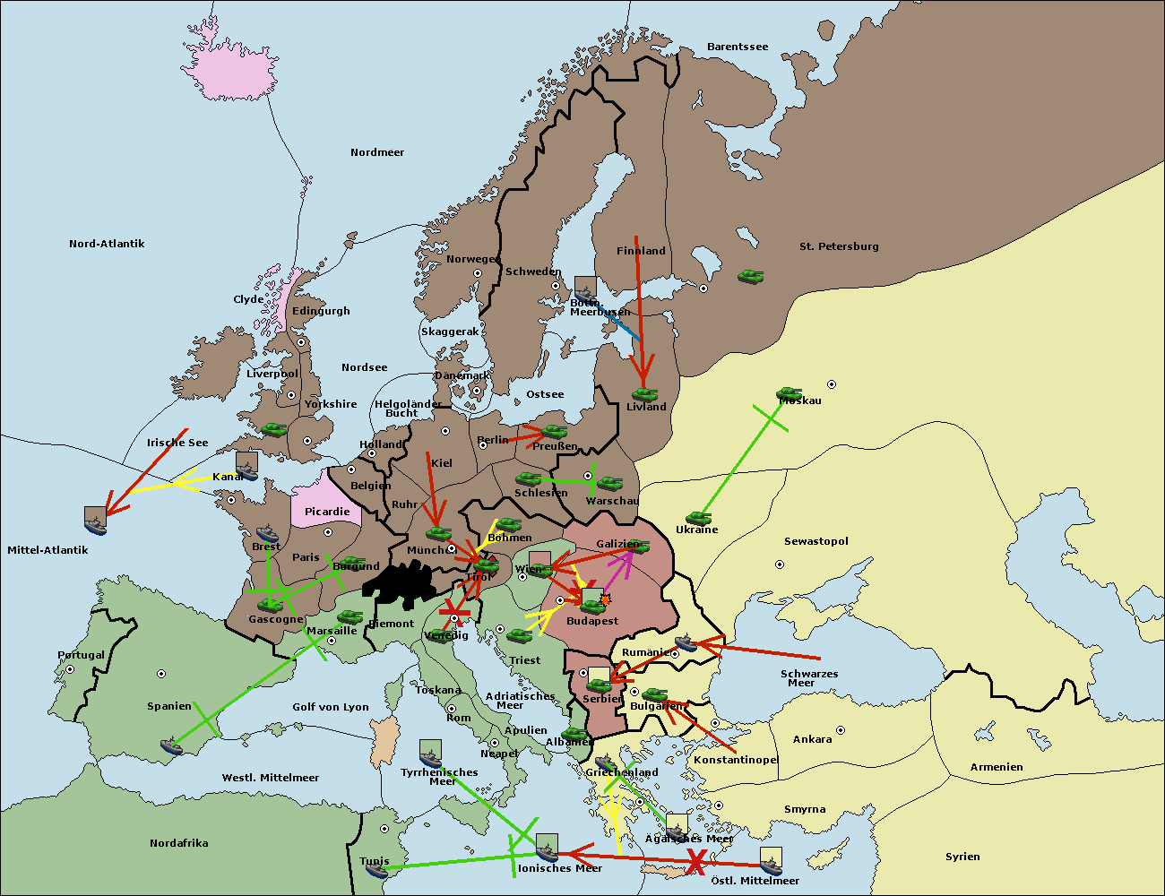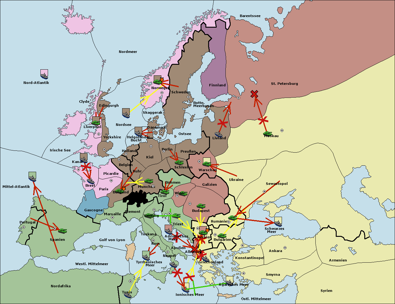 • Die Flotte in Bulgarien (Südküste) move nach Griechenland.