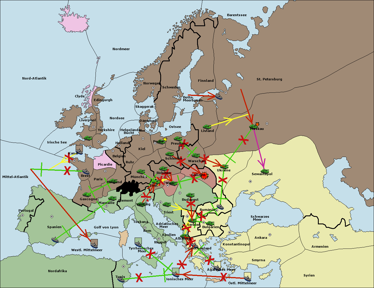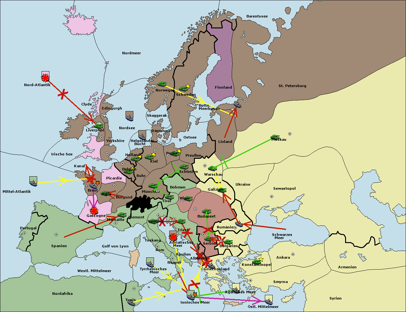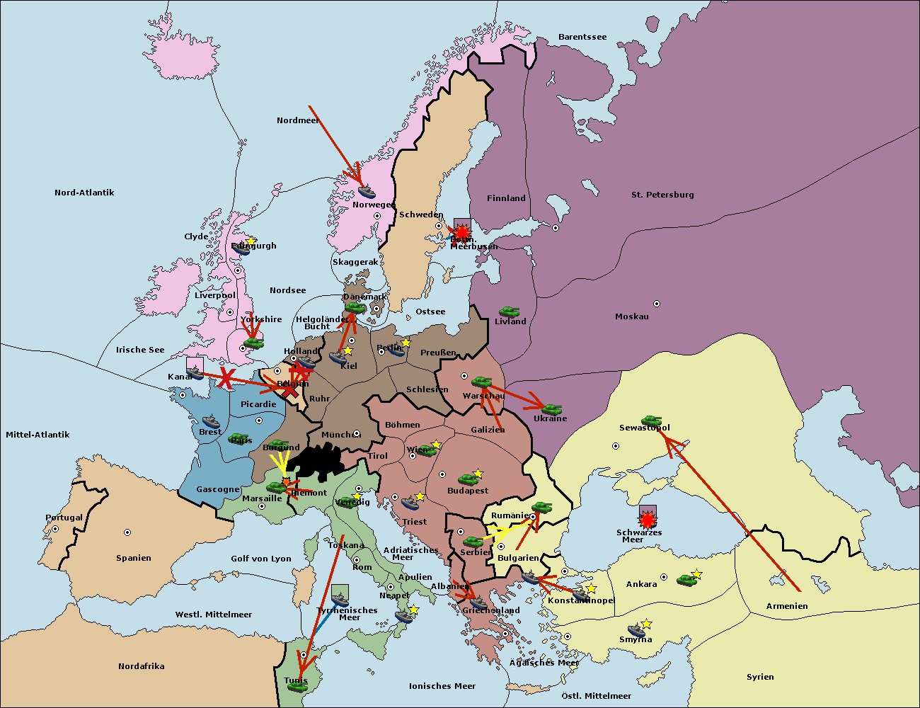 • Die Flotte in Bulgarien (Südküste) move nach Griechenland.