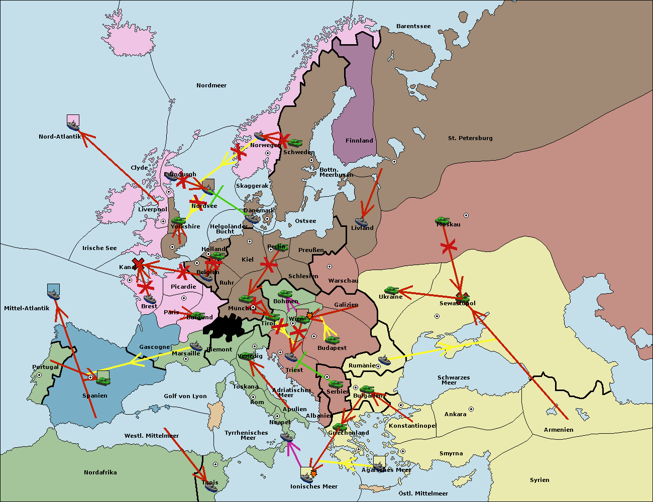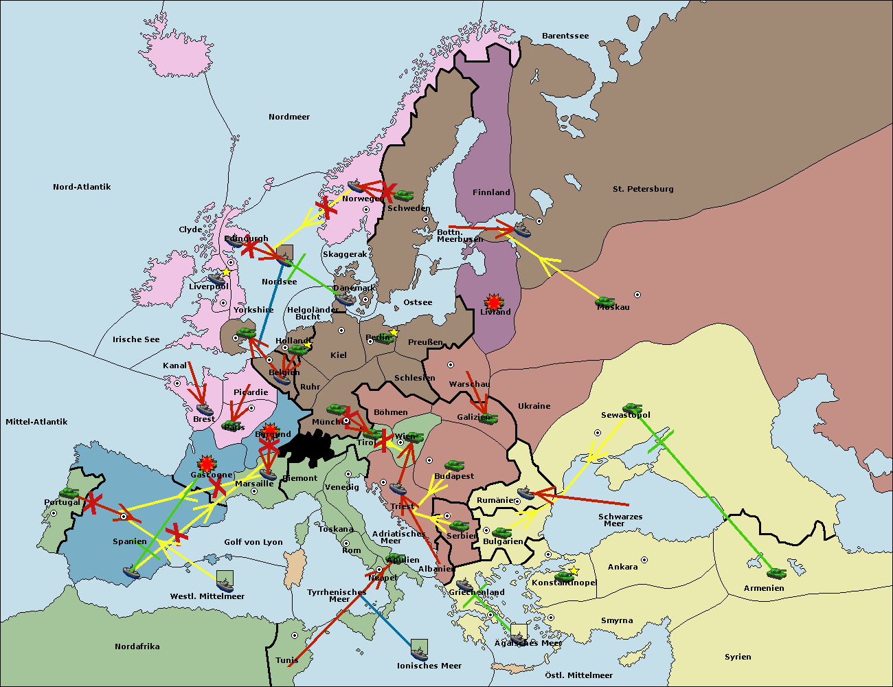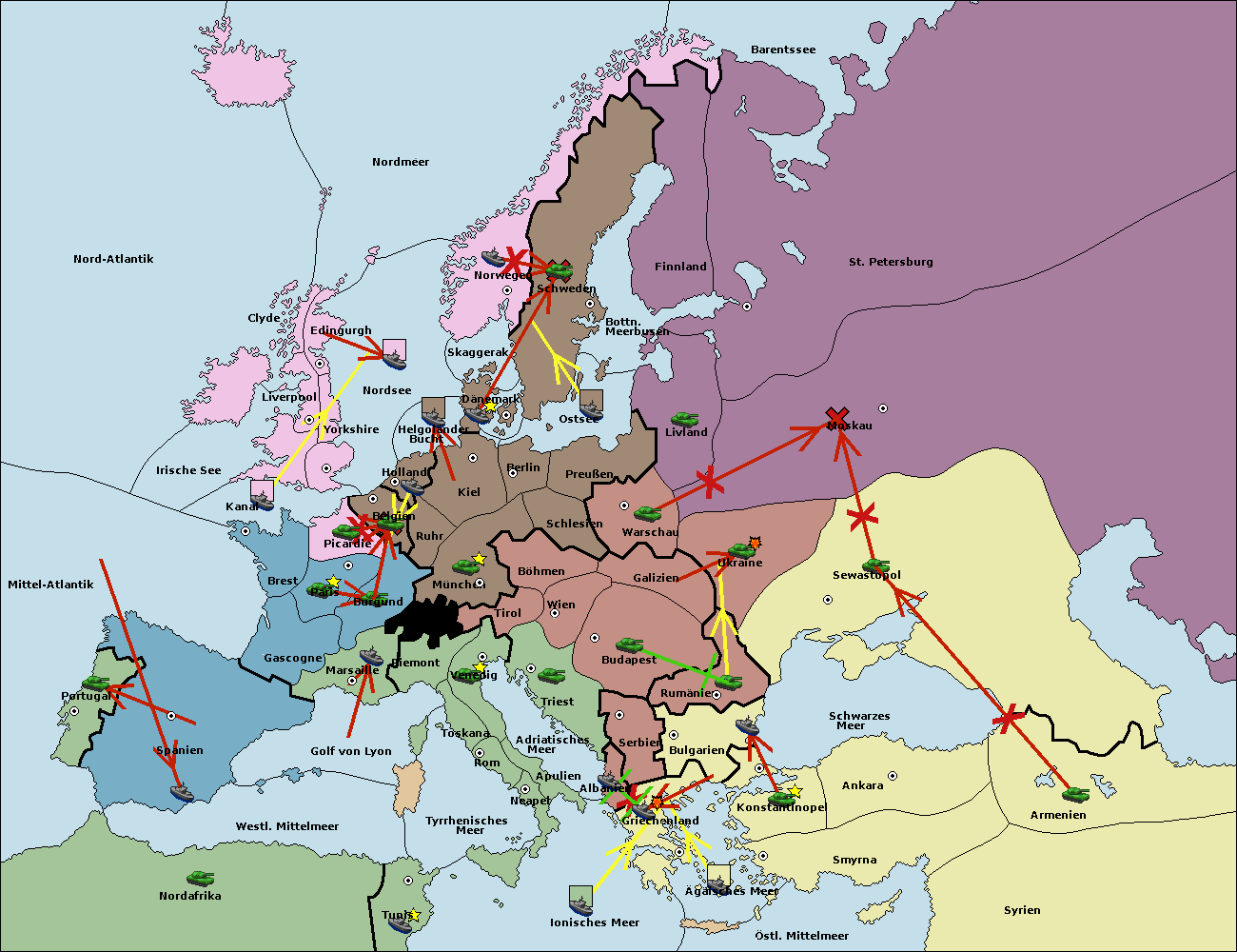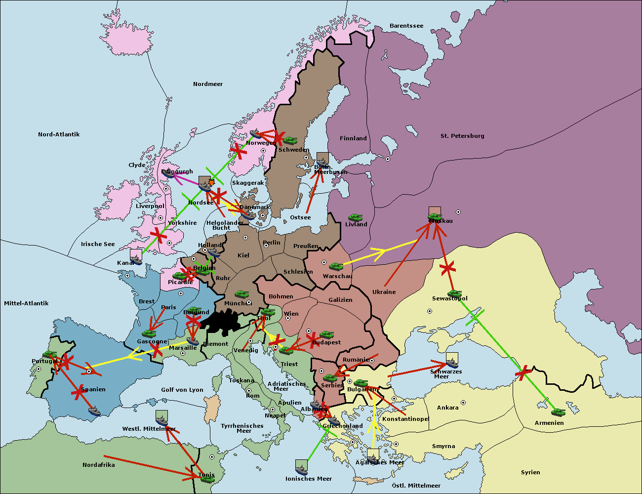 • Die Flotte in Bulgarien (Südküste) move nach Griechenland.
