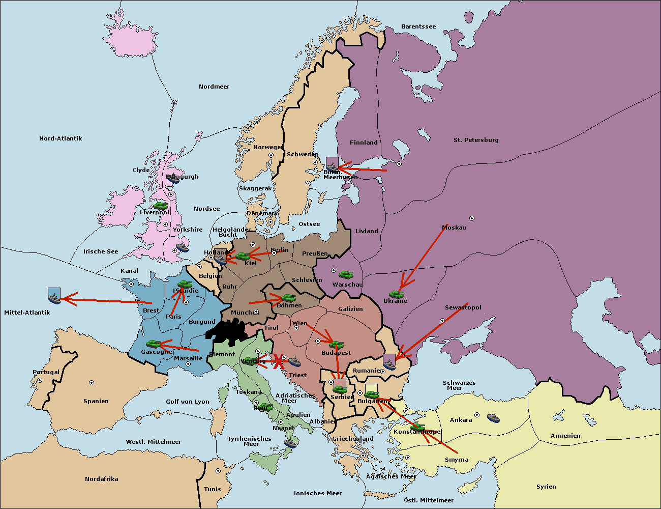 • Die Armee in Budapest support move nach Triest von Serbien.