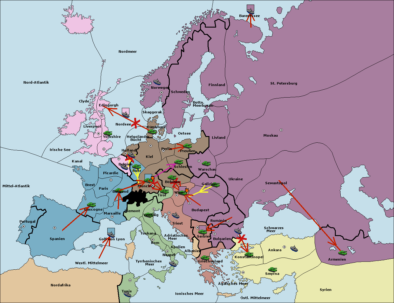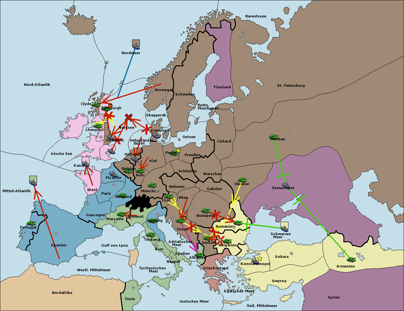 • Die Armee in Bulgarien wird zerstörtFlotte in Bulgarien gebaut.