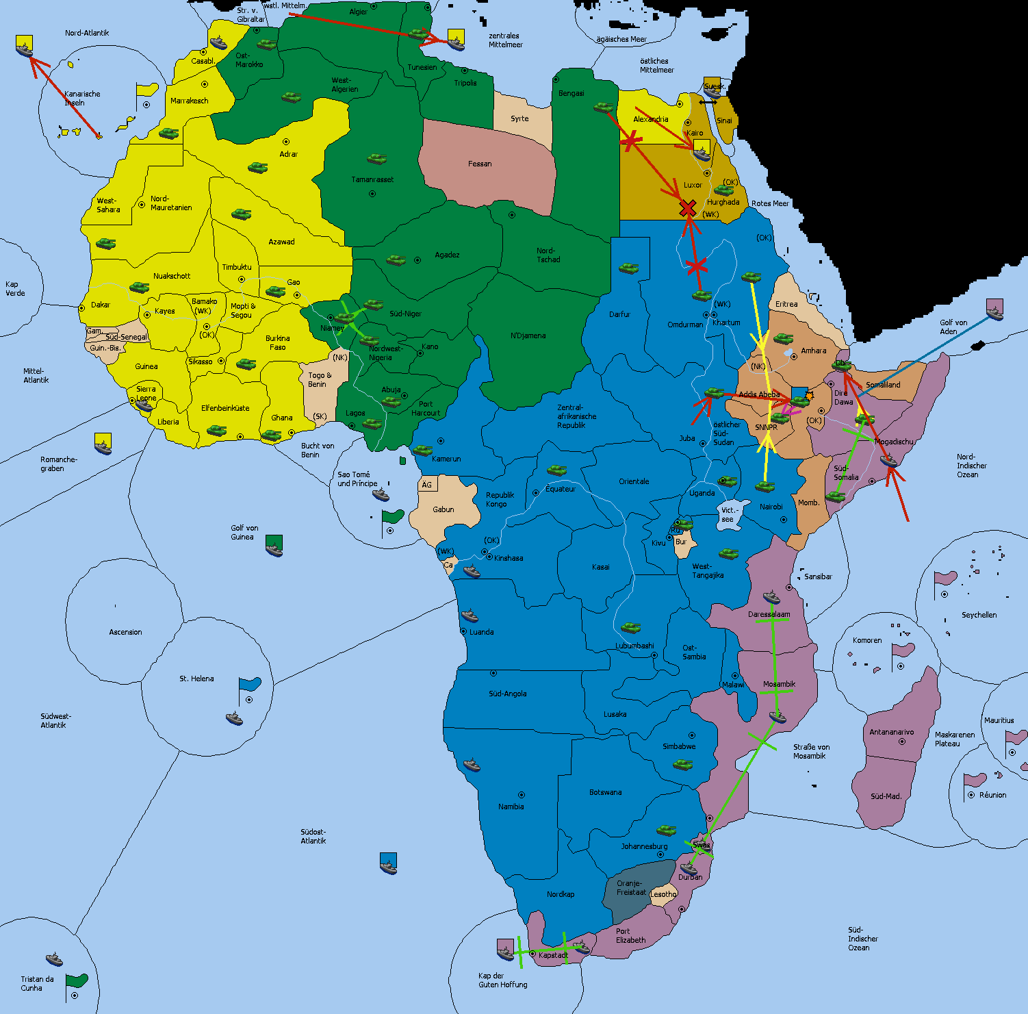 - Die Flotte in Nord-Indischer Ozean move nach Mogadischu. (gescheitert)