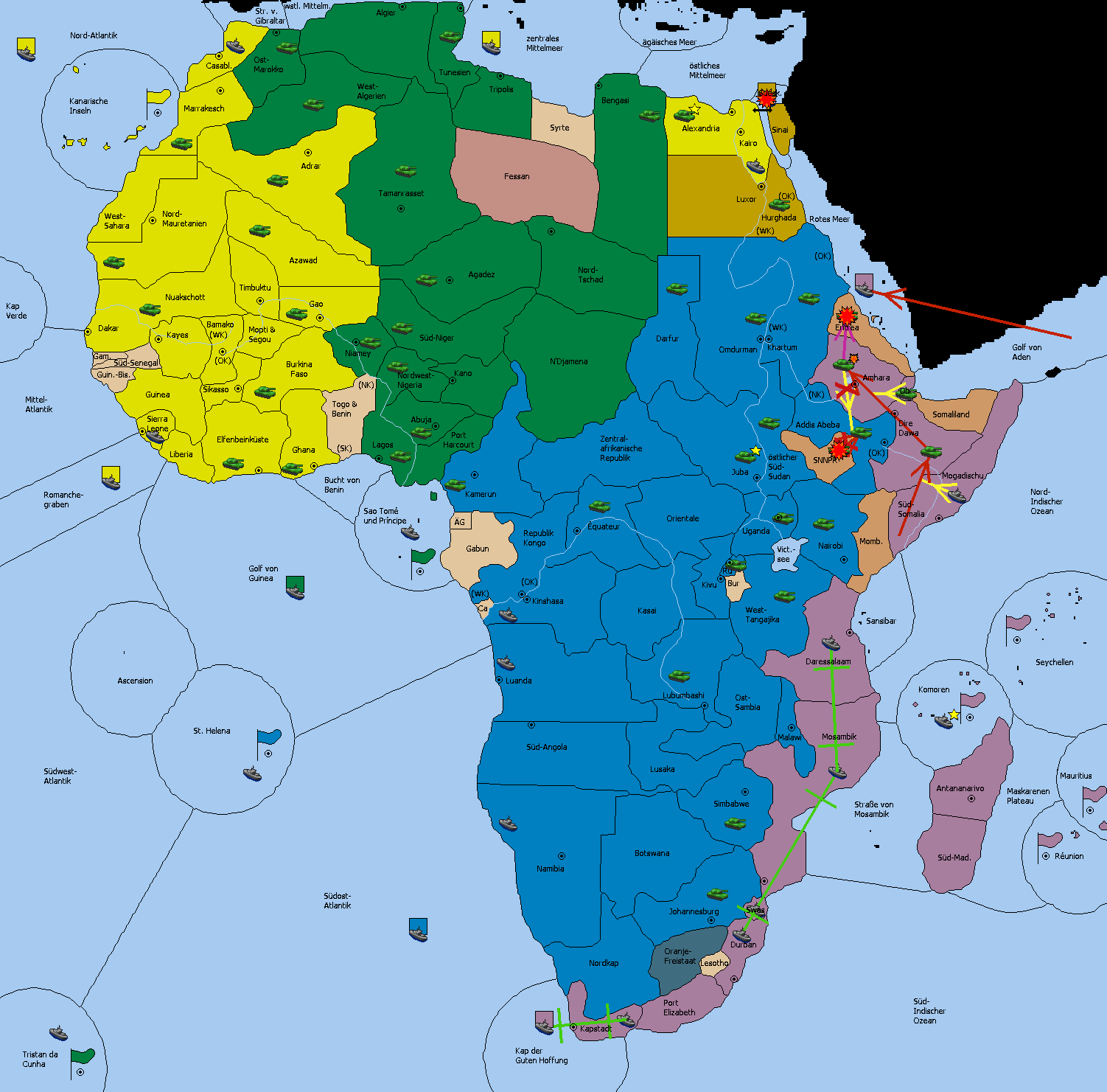 - Die Flotte in Nord-Indischer Ozean move nach Daressalaam.