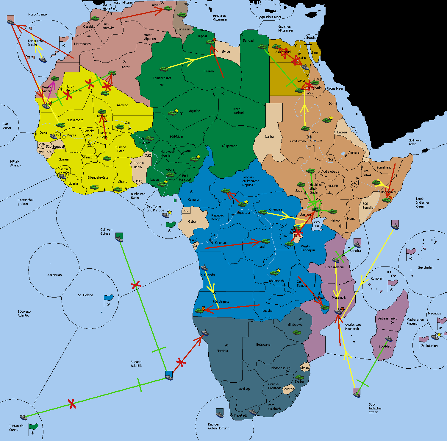 - Die Flotte in Luanda support move nach Südost-Atlantik von St Helena. (gescheitert)