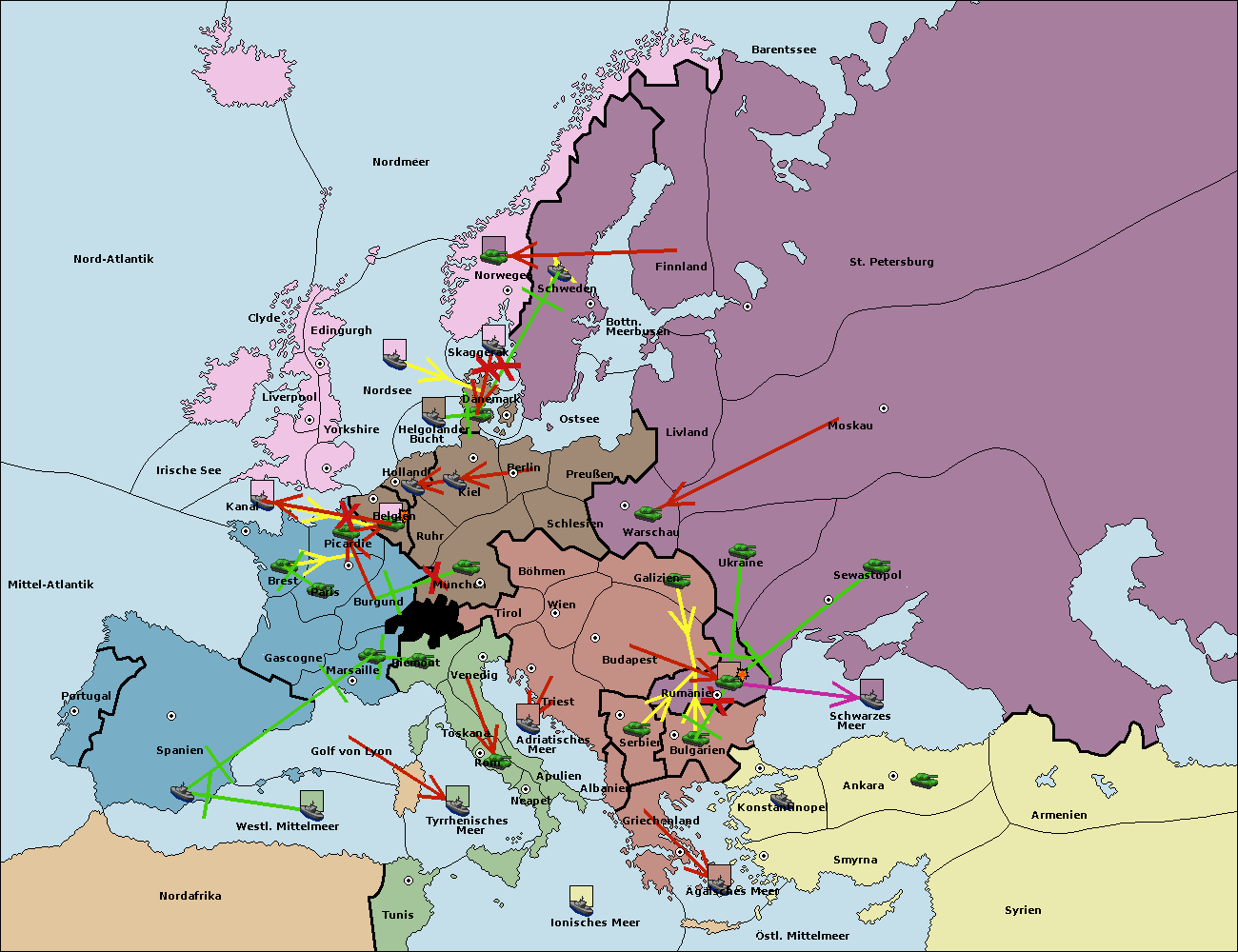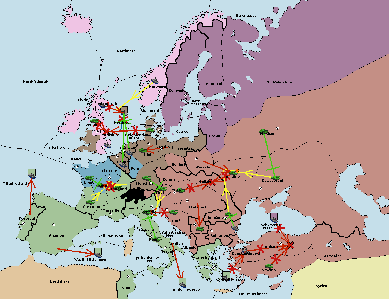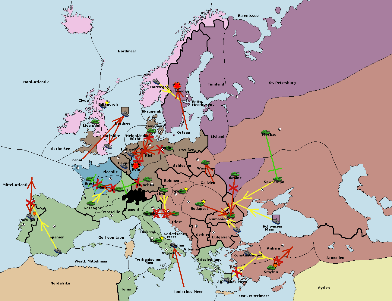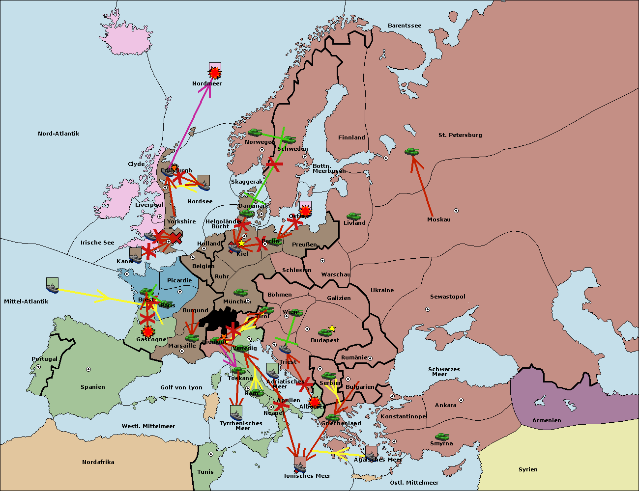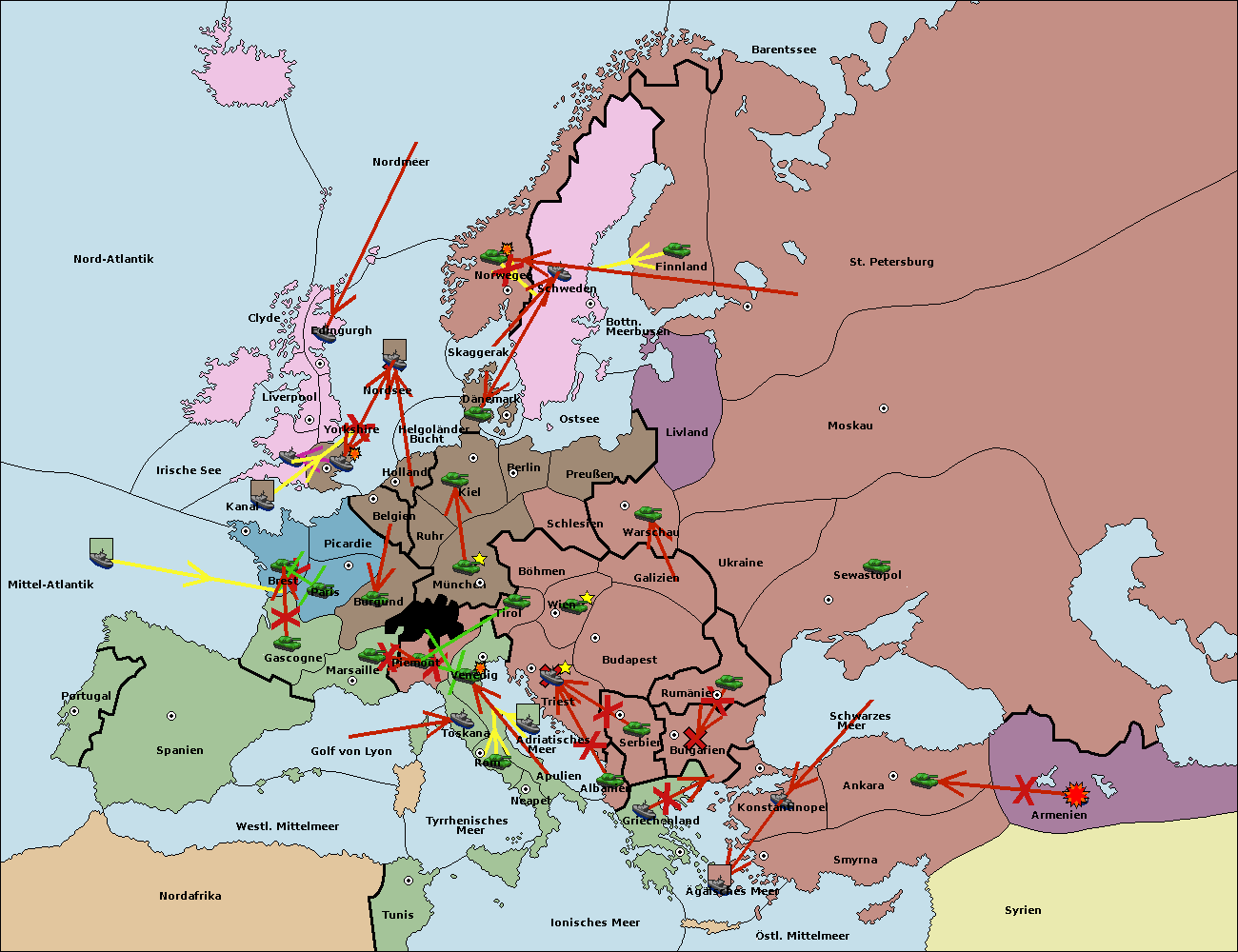 • Die Armee in Bulgarien wird zerstörtFlotte in Bulgarien gebaut.
