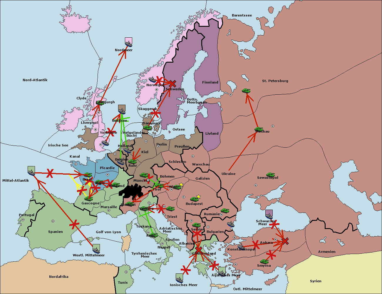 • Die Armee in Budapest support move nach Triest von Serbien.