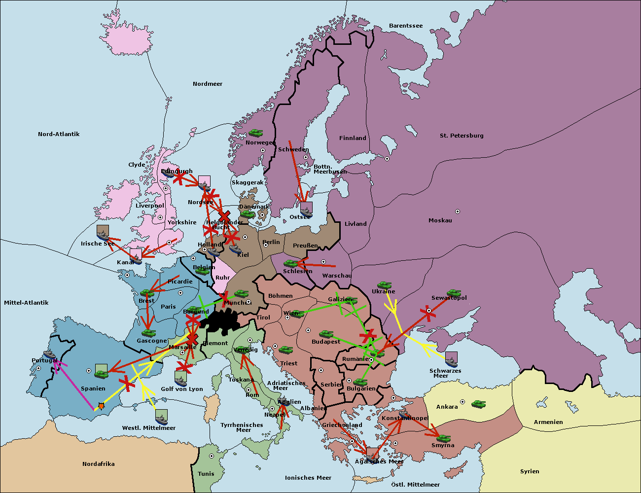 • Die Armee in Piemont support move nach Marseille von Spanien. (gescheitert)