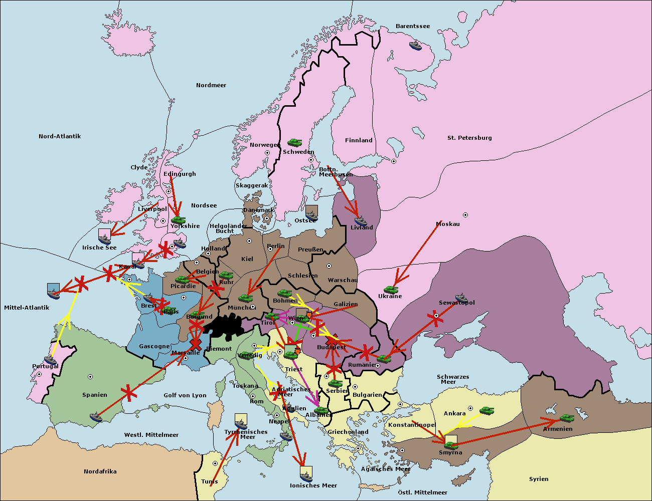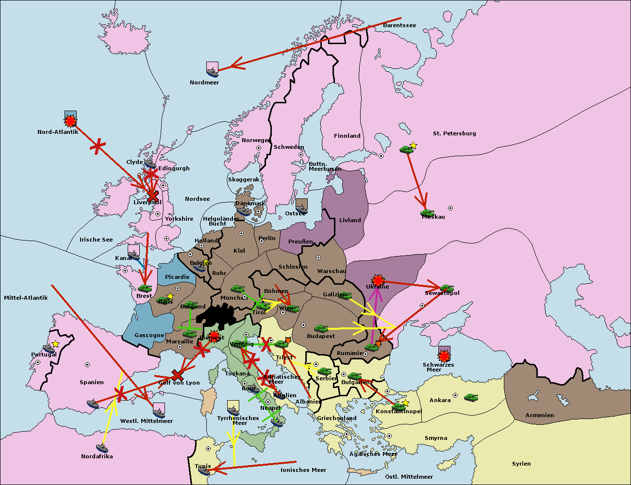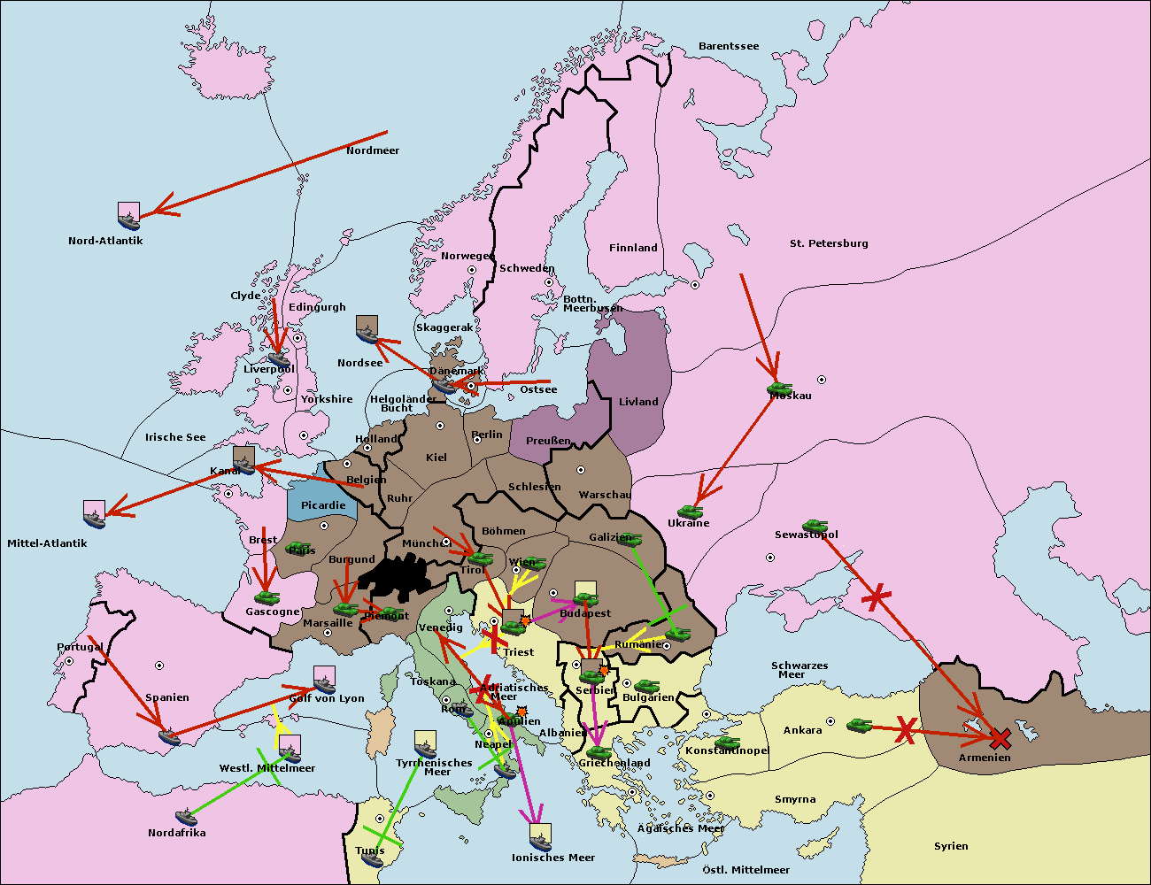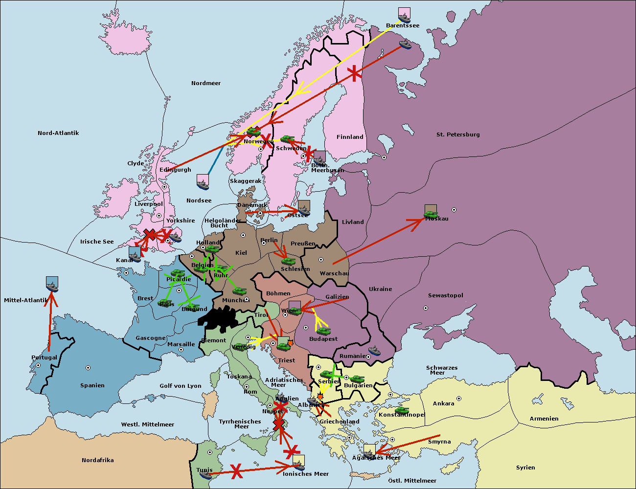 • Die Flotte in Nord Afrika move nach Tunis. (gescheitert)