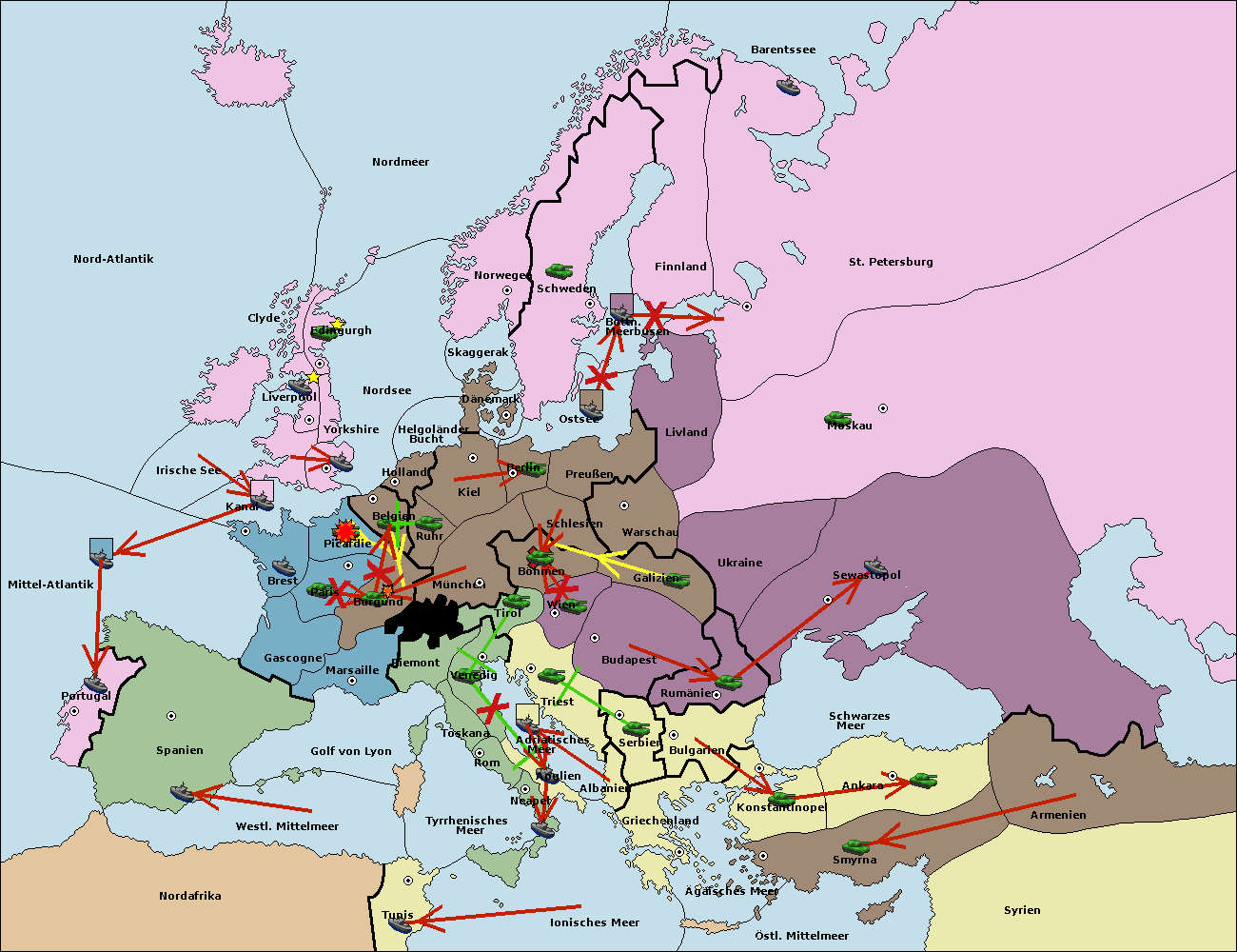 • Die Armee in Bulgarien move nach Serbien. (gescheitert)