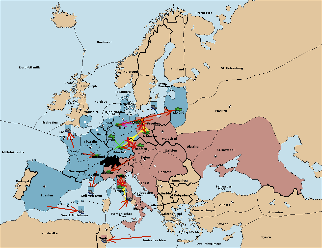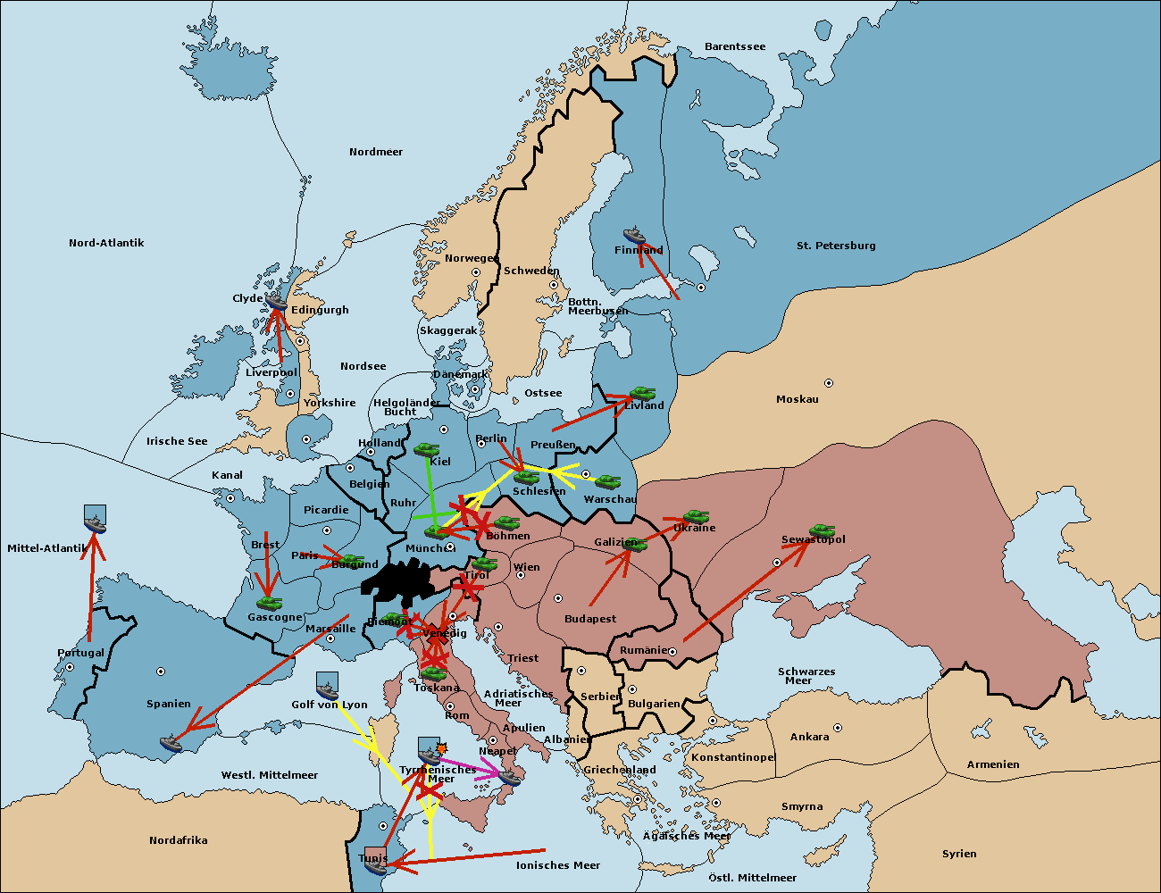 • Die Flotte in Tunis move nach westl. Mittelmeer. (gescheitert)