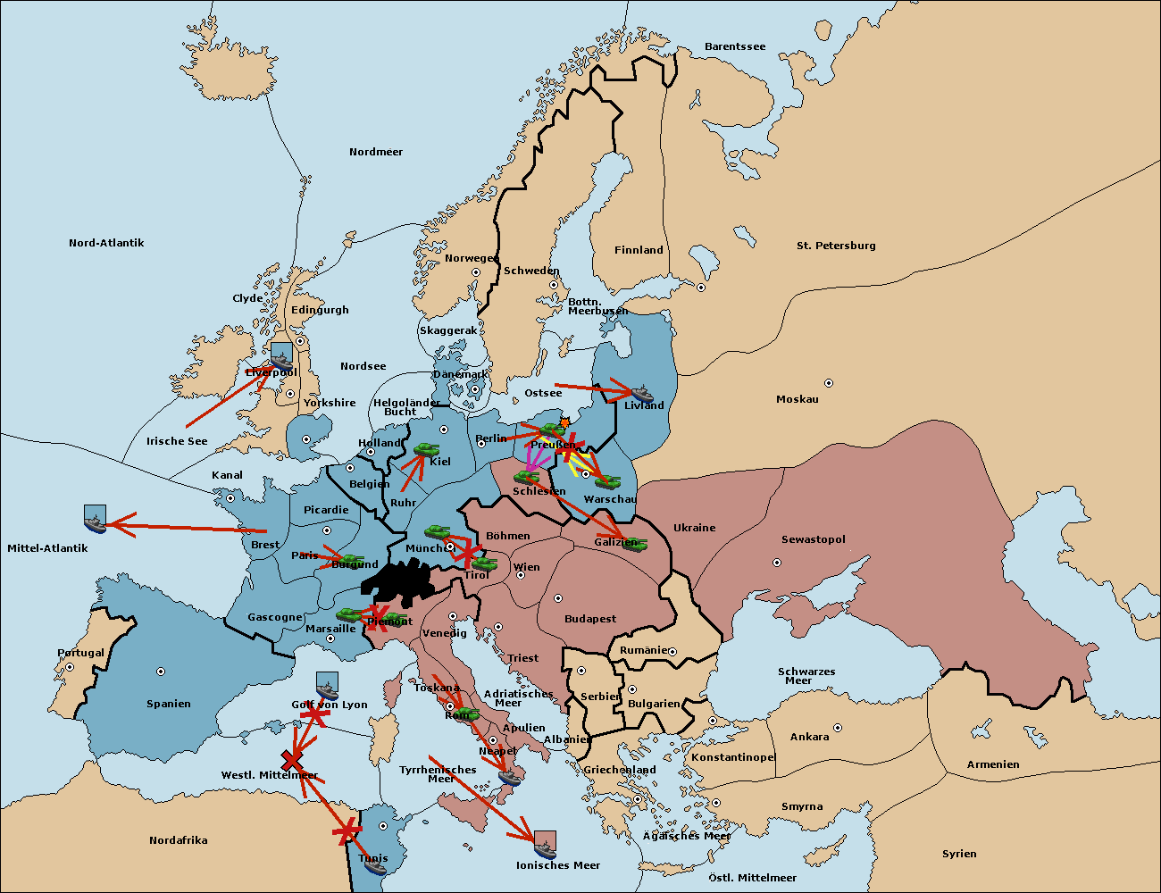 • Die Flotte in Golf von Lyon move nach westl. Mittelmeer. (gescheitert)
