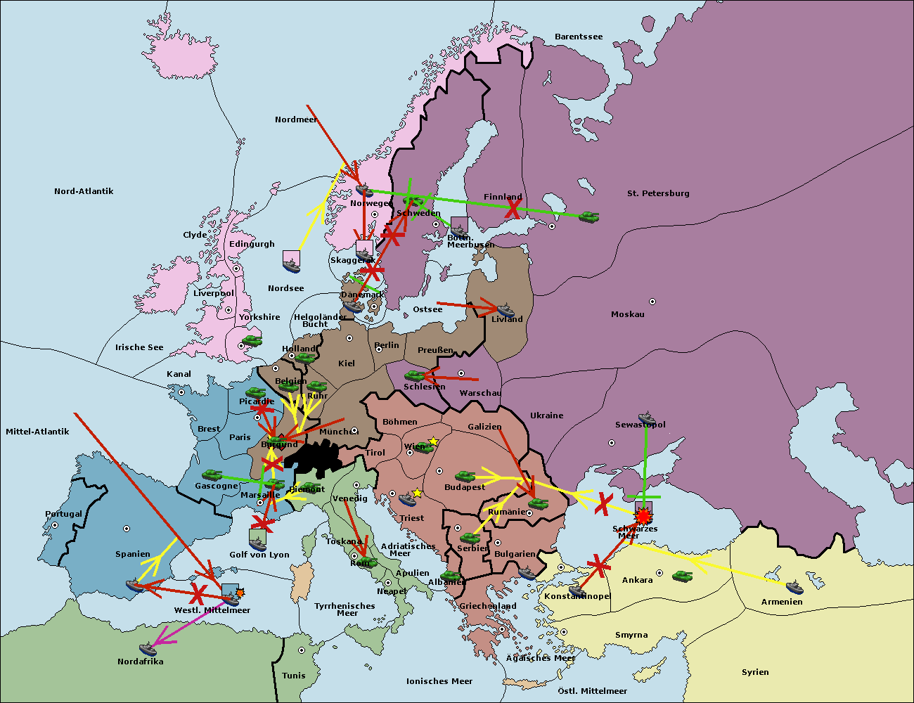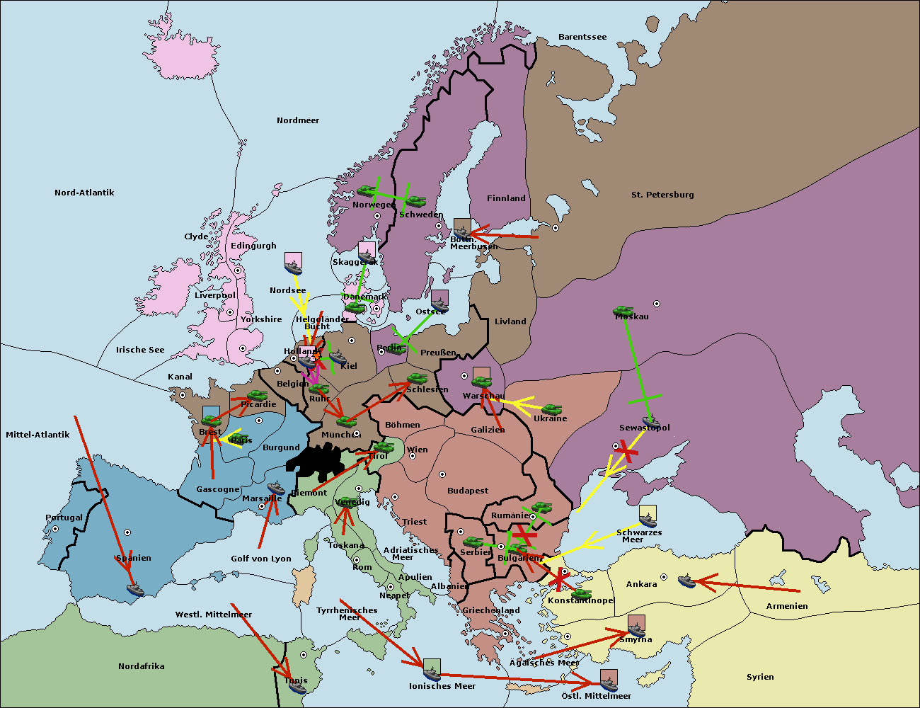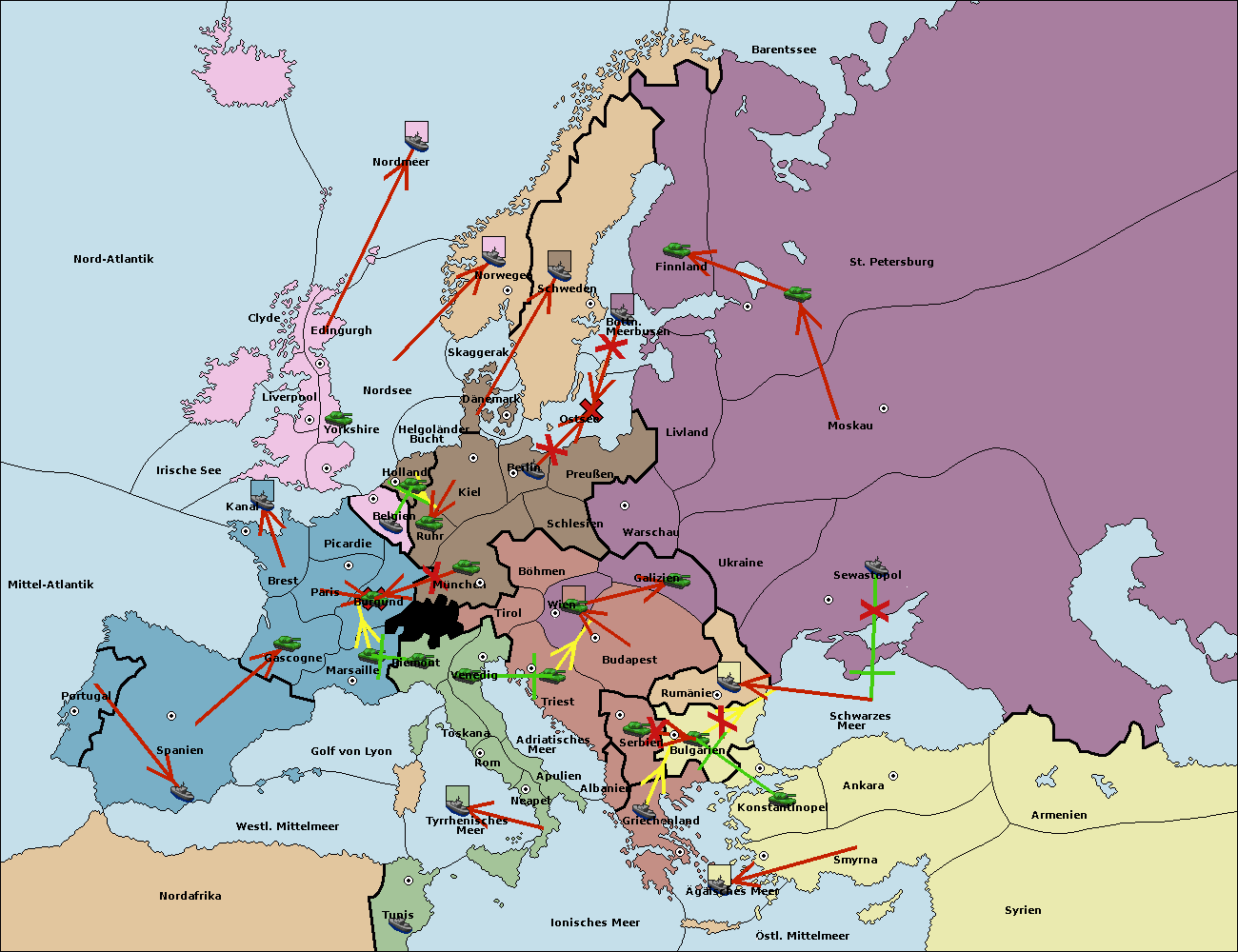 • Die Armee in Bulgarien wird zerstörtFlotte in Bulgarien gebaut.