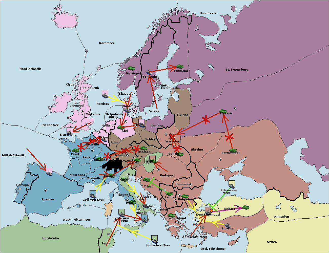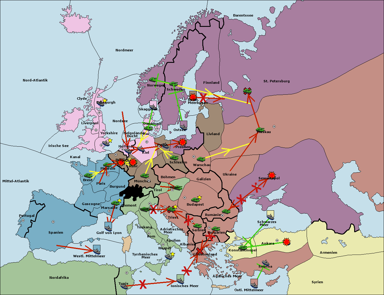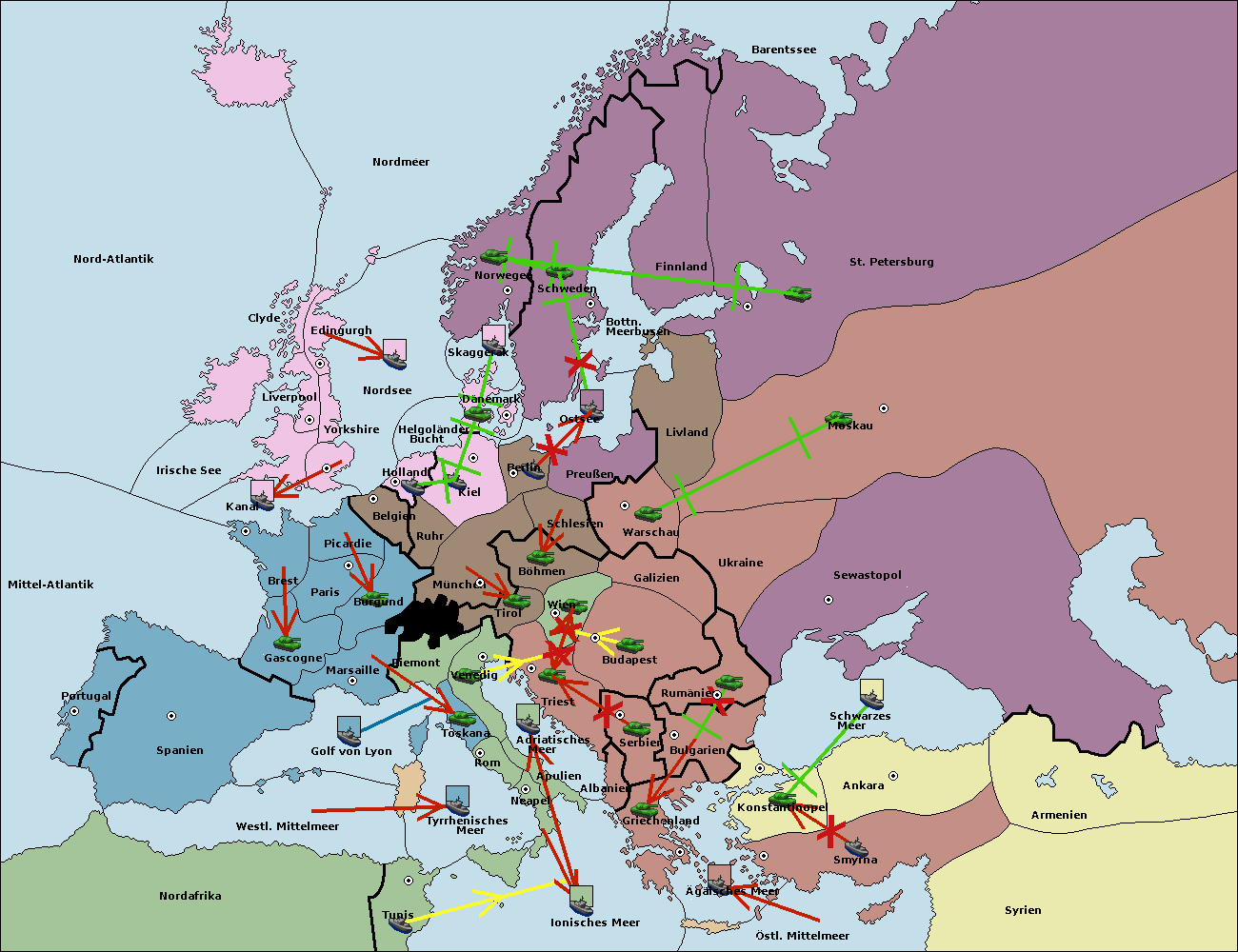 • Die Armee in Bulgarien wird zerstörtFlotte in Bulgarien gebaut.
