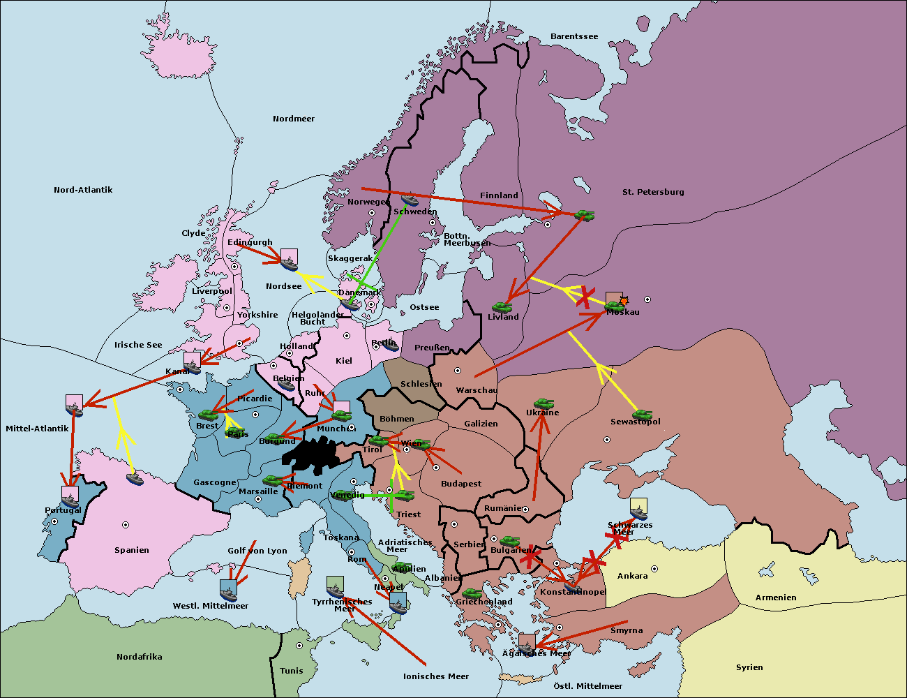 • Die Armee in Konstantinopel support hold nach Bulgarien.