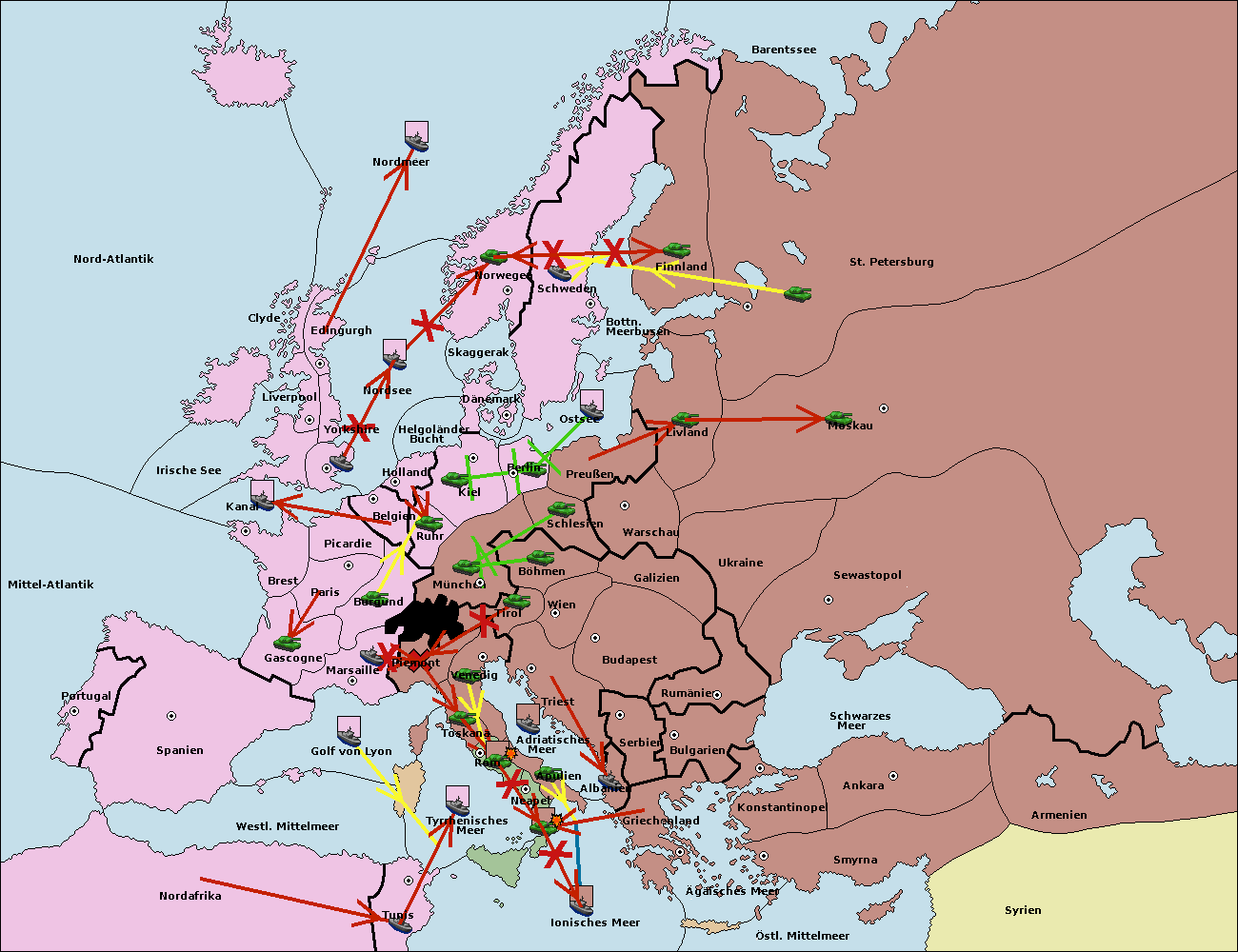 • Die Flotte in Spanien (Südküste) move nach westl. Mittelmeer. (gescheitert)