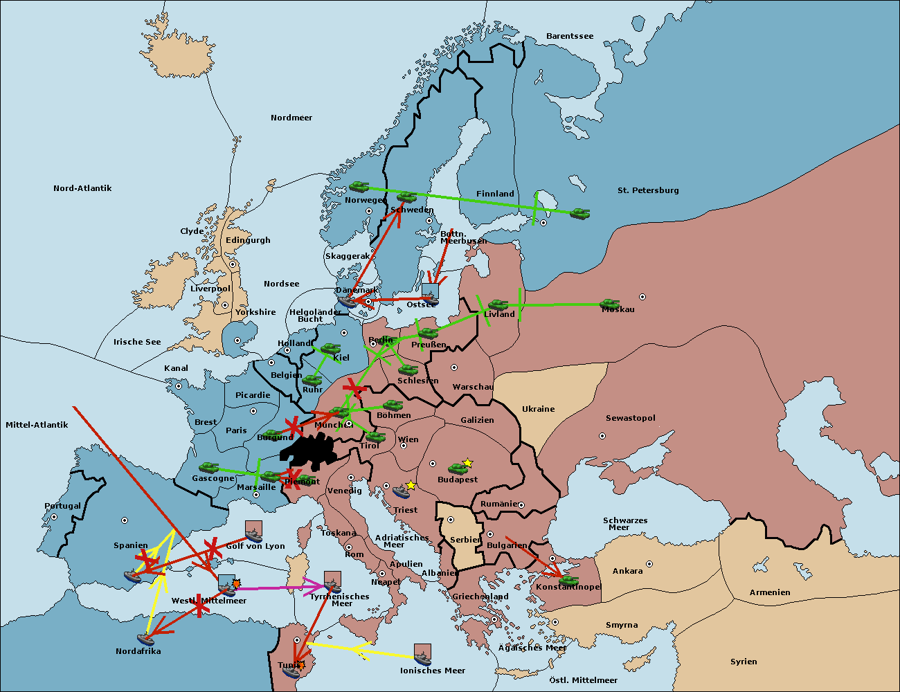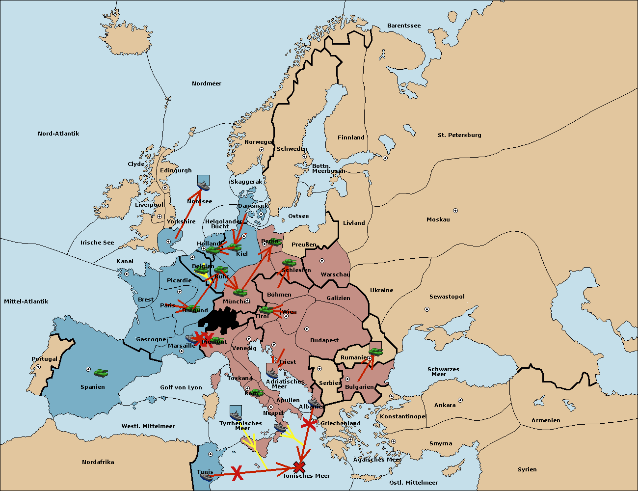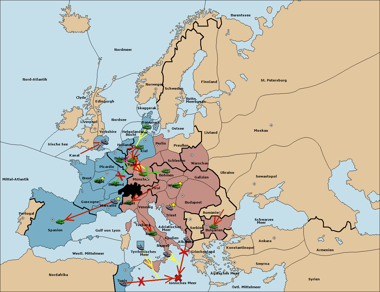 • Die Flotte in Nord Afrika support hold nach westl. Mittelmeer.