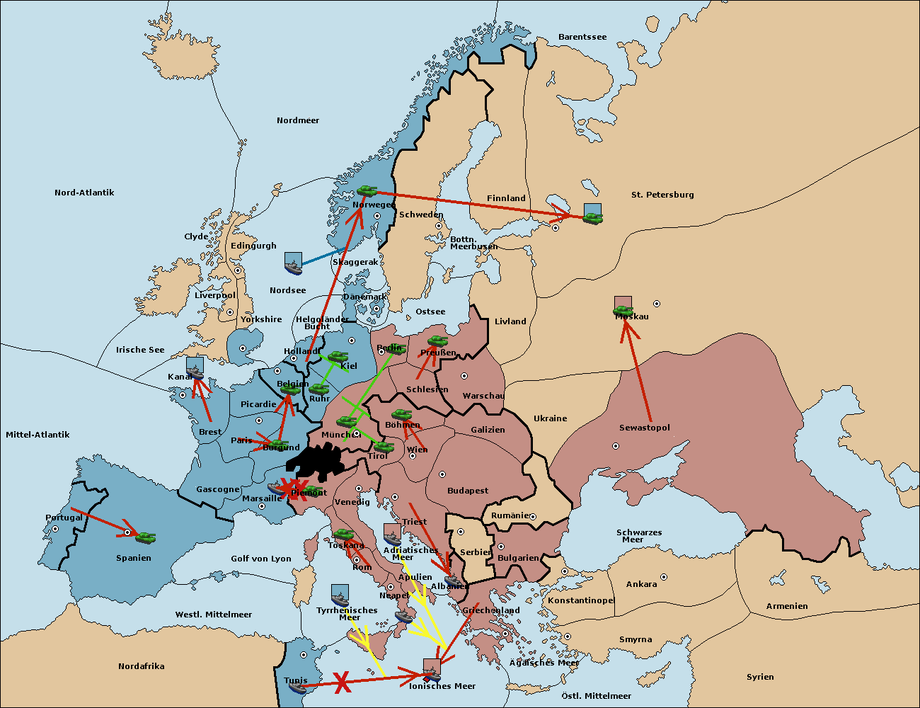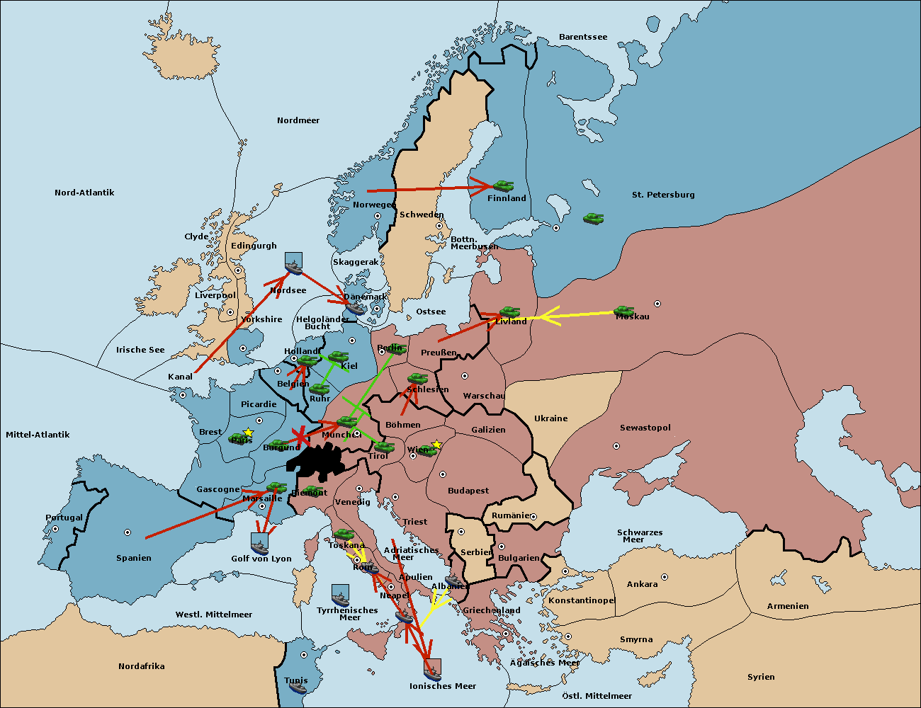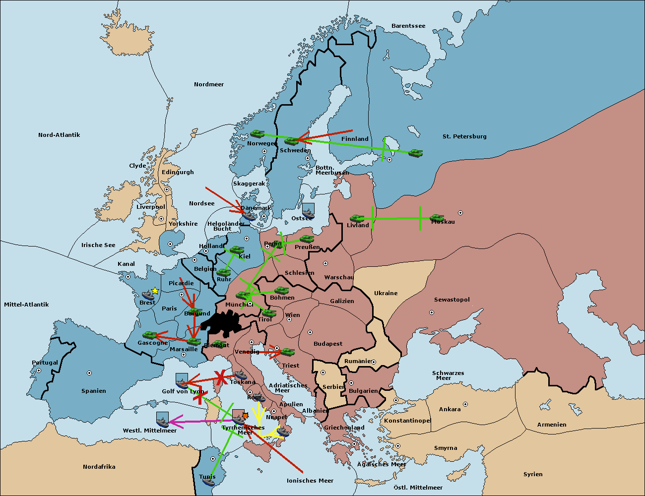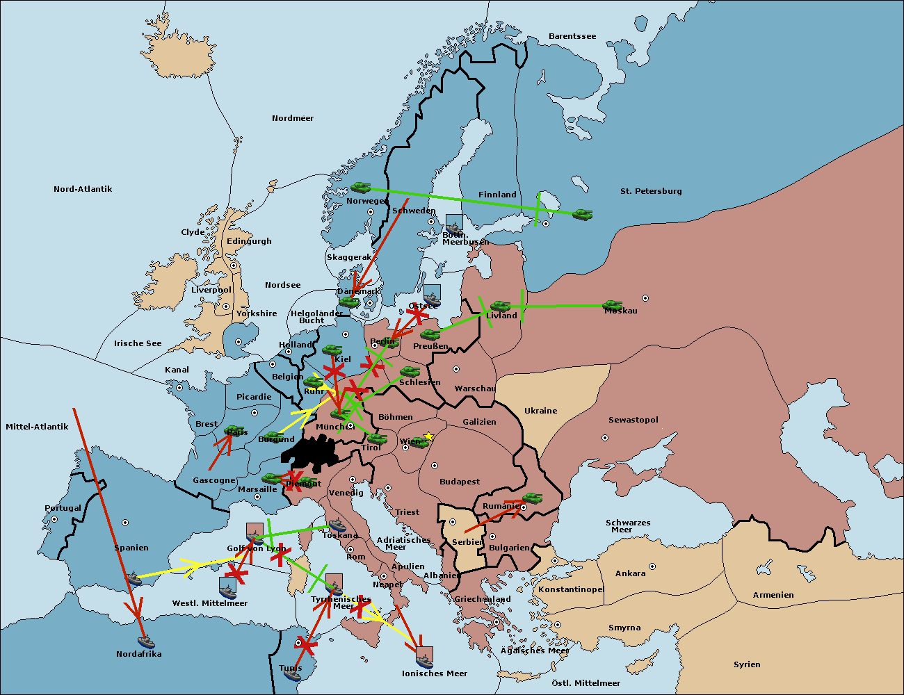 • Die Flotte in Nord Afrika support hold nach westl. Mittelmeer.