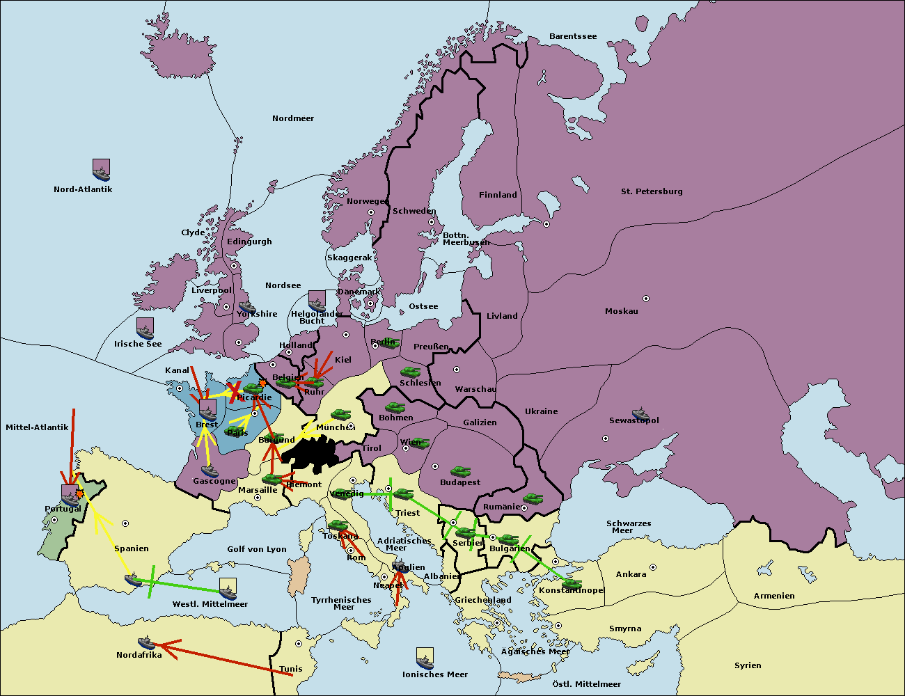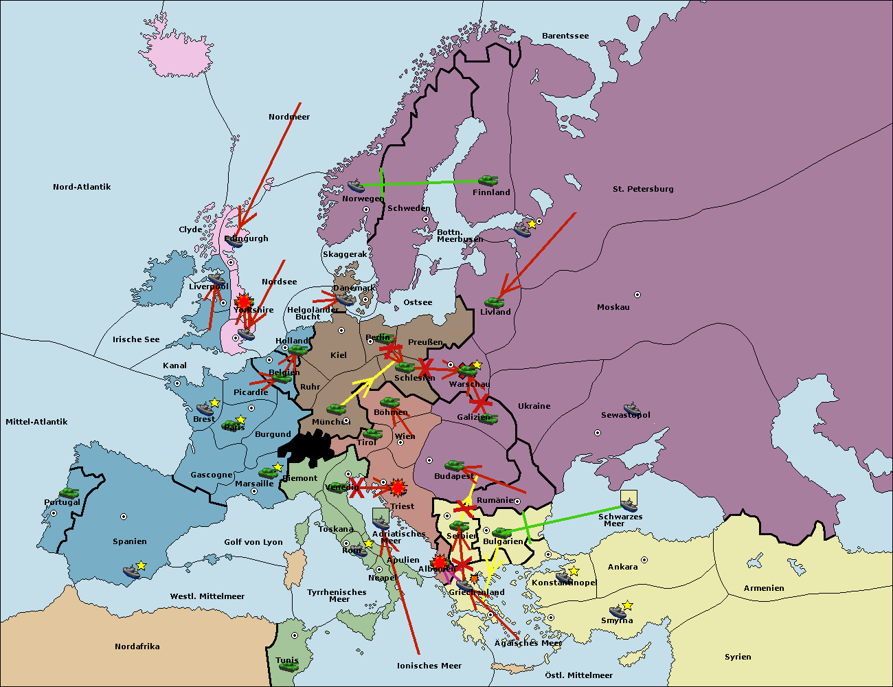 • Die Armee in Konstantinopel support hold nach Bulgarien.