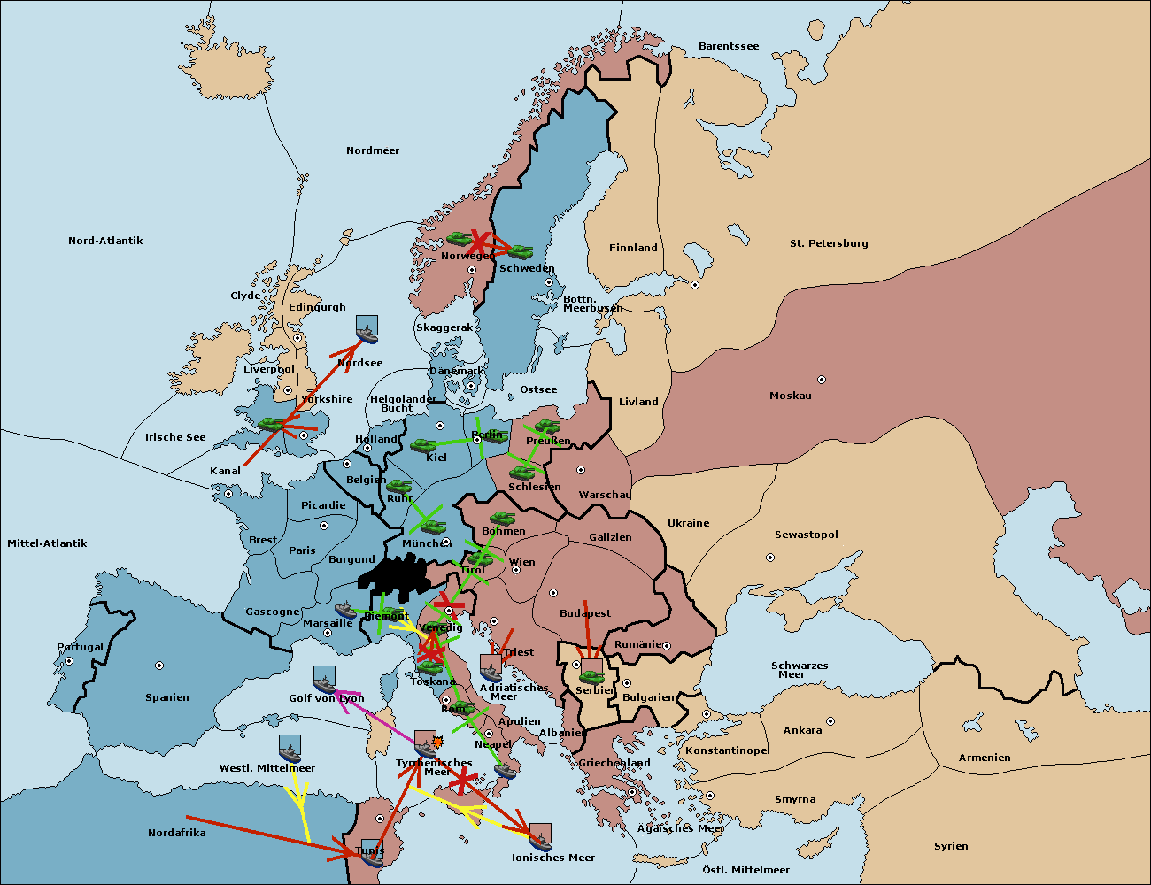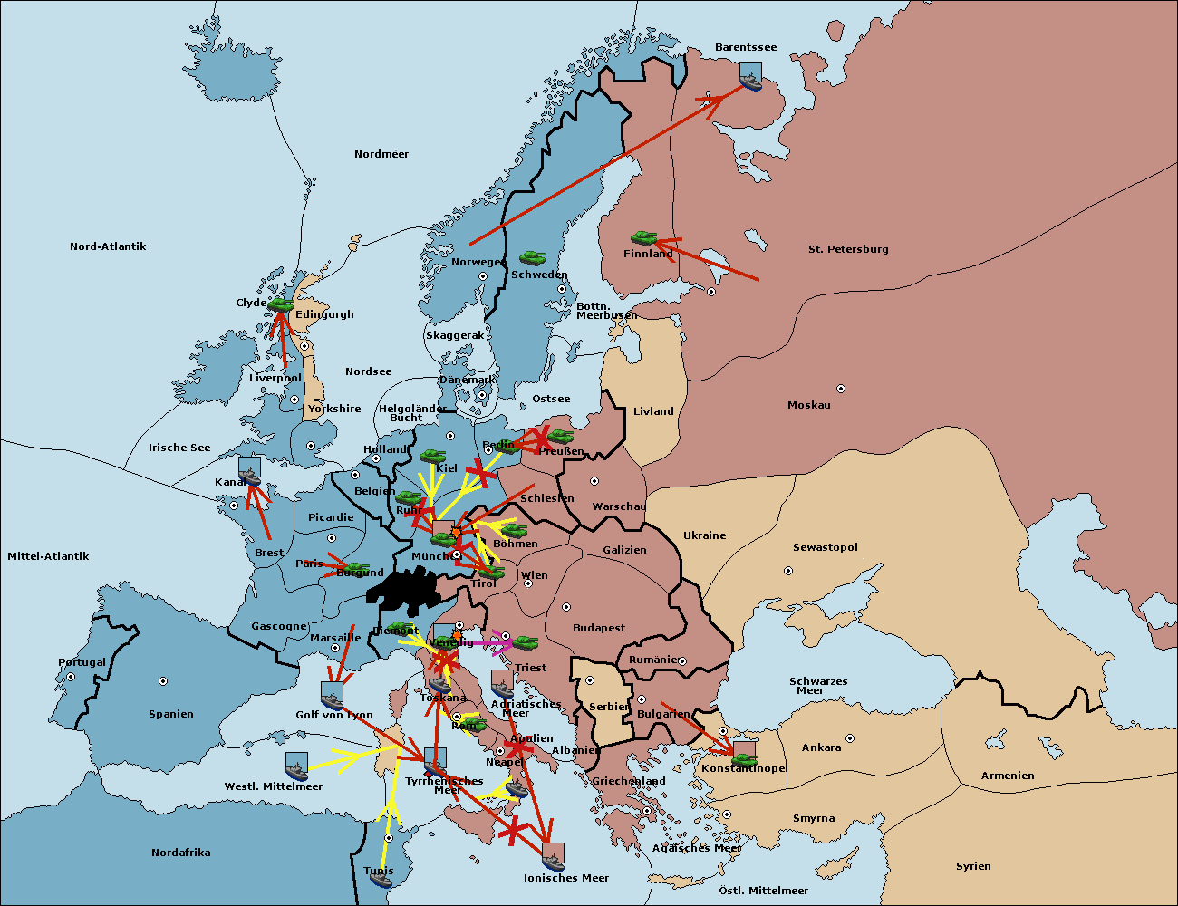 • Die Flotte in Golf von Lyon move nach Toskana. (gescheitert)