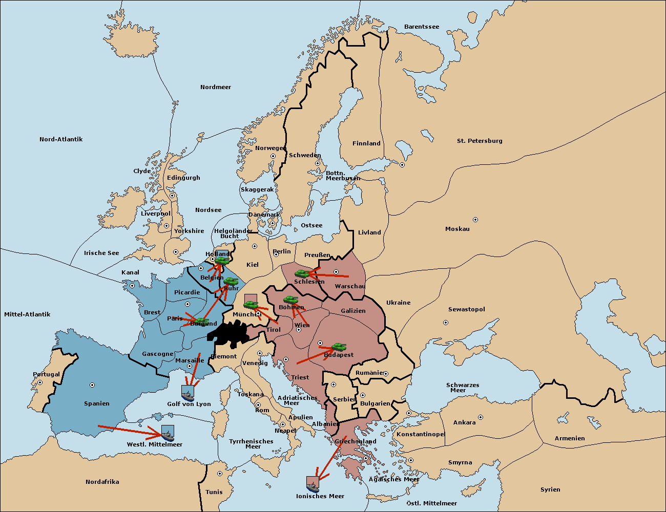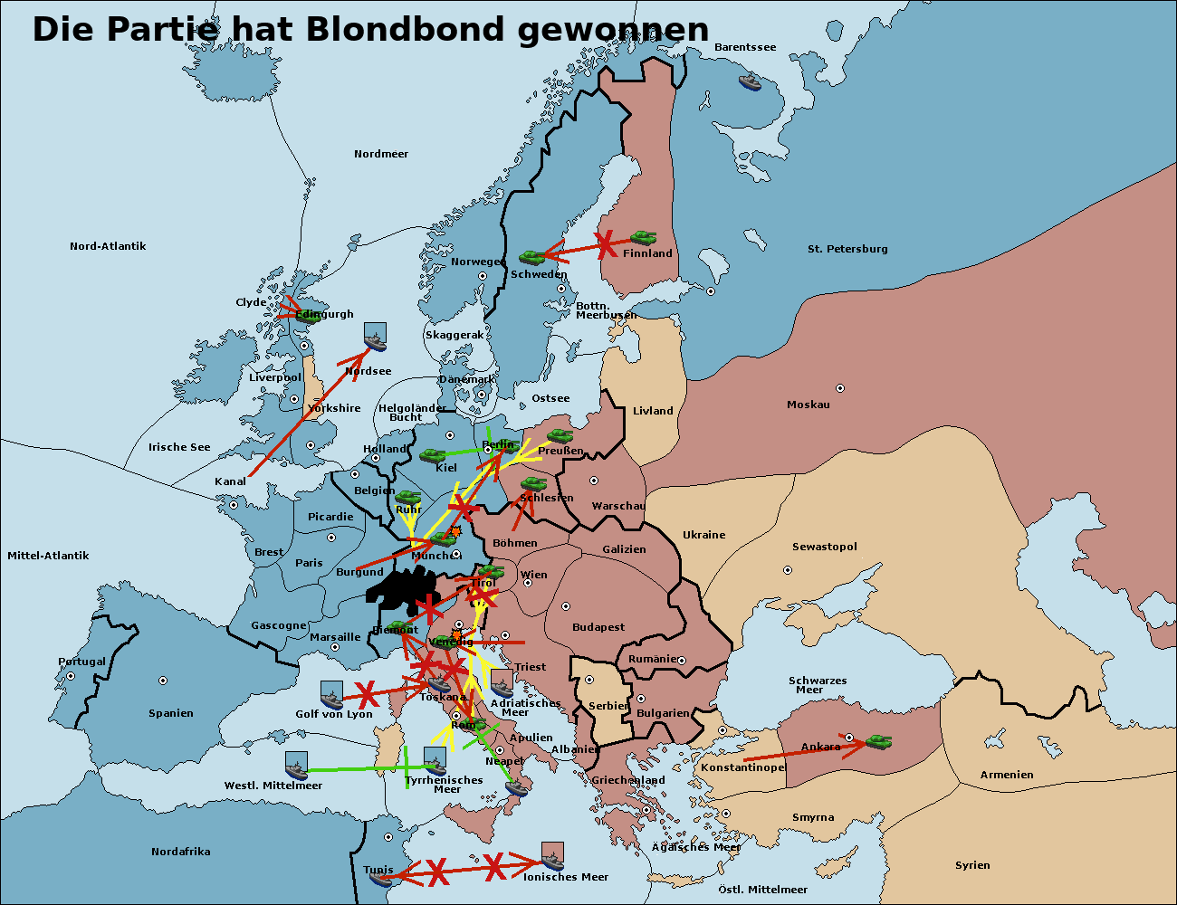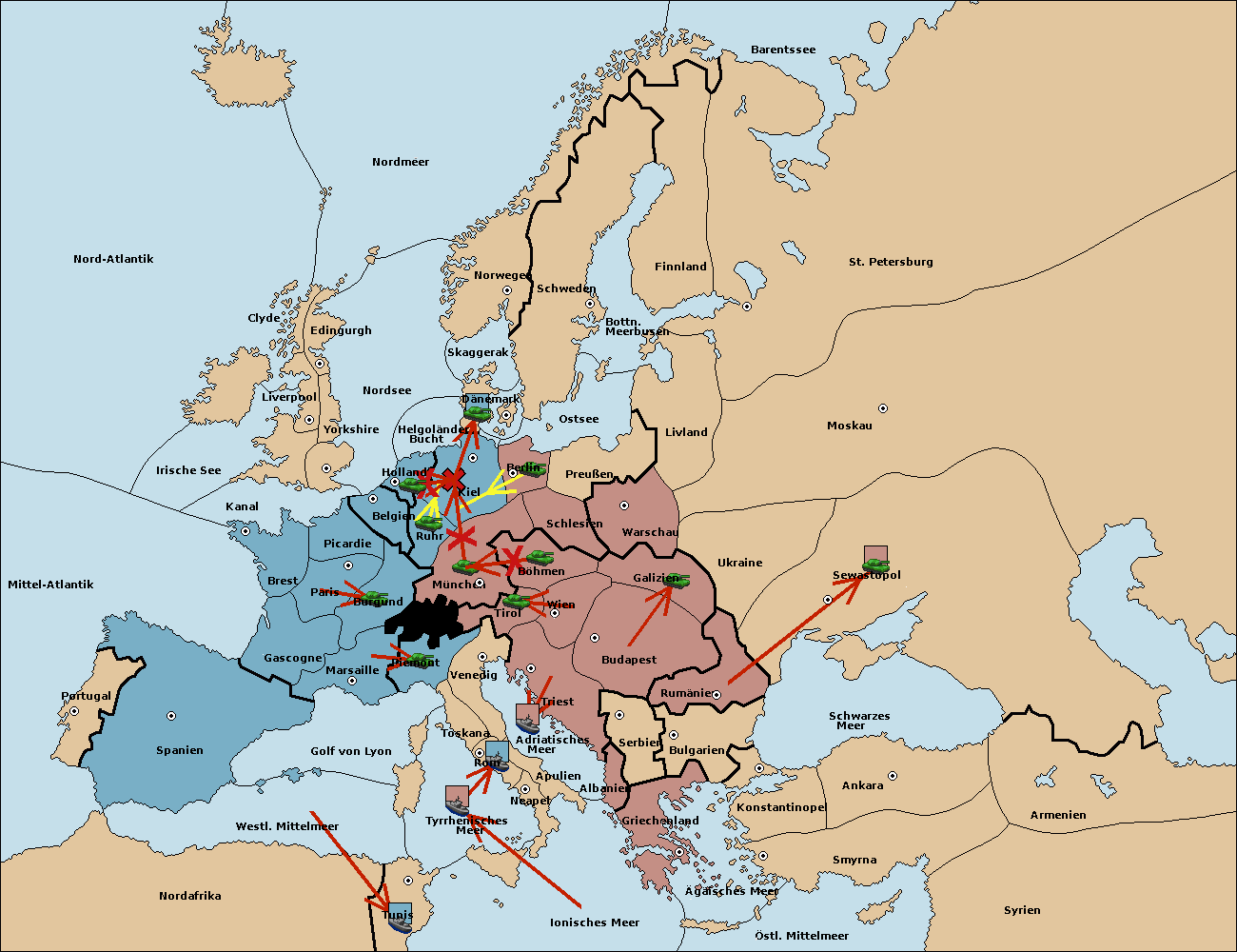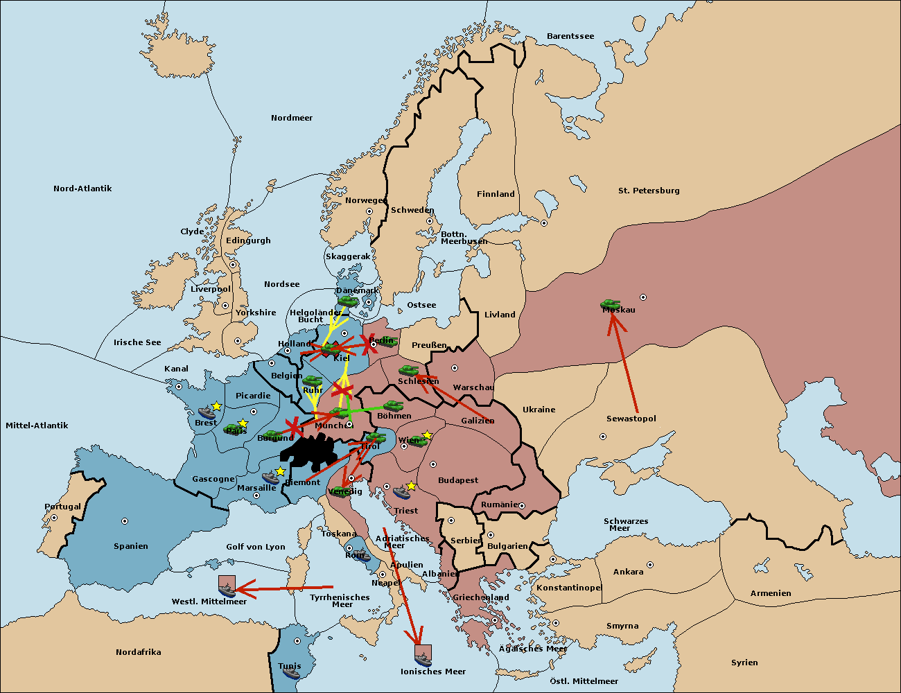 • Die Armee in München wird zerstörtFlotte in München gebaut.