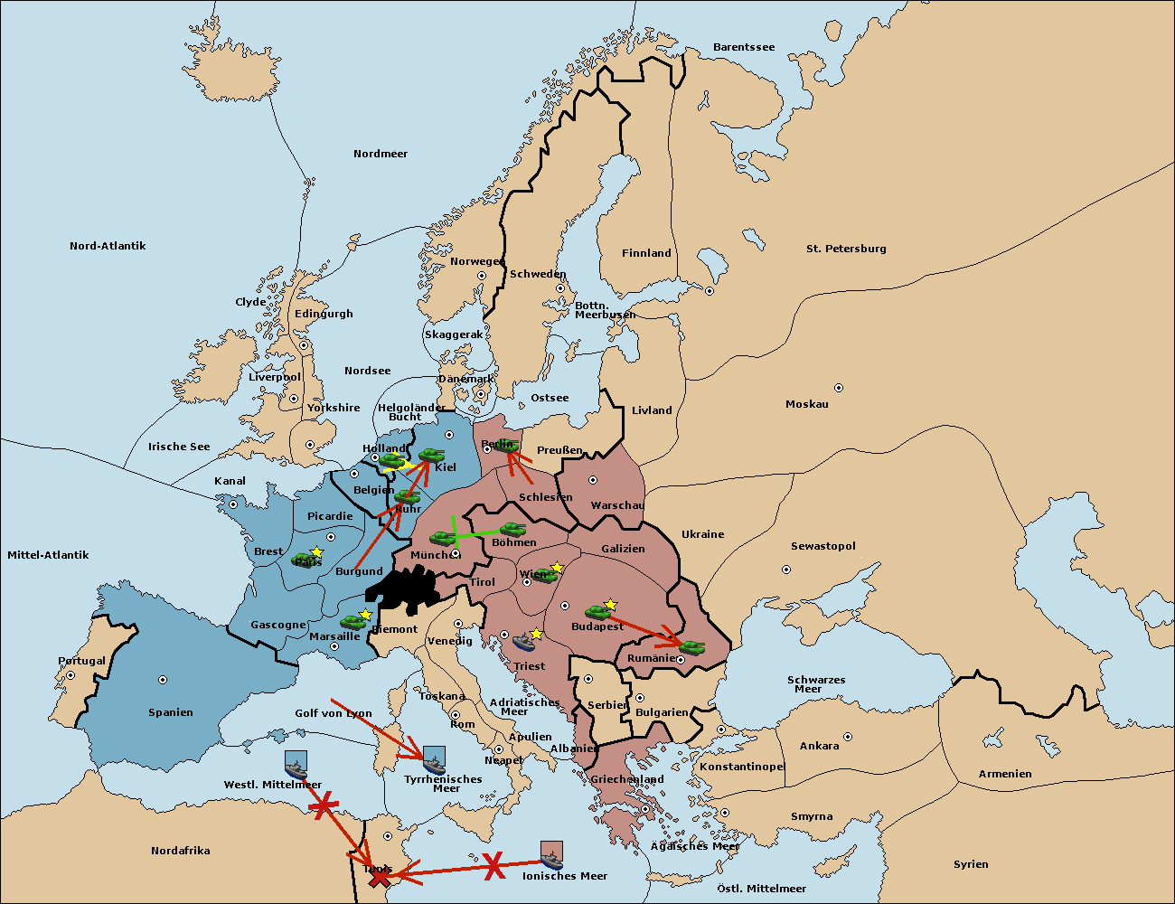 • Die Flotte in Ionisches Meer move nach Tunis. (gescheitert)