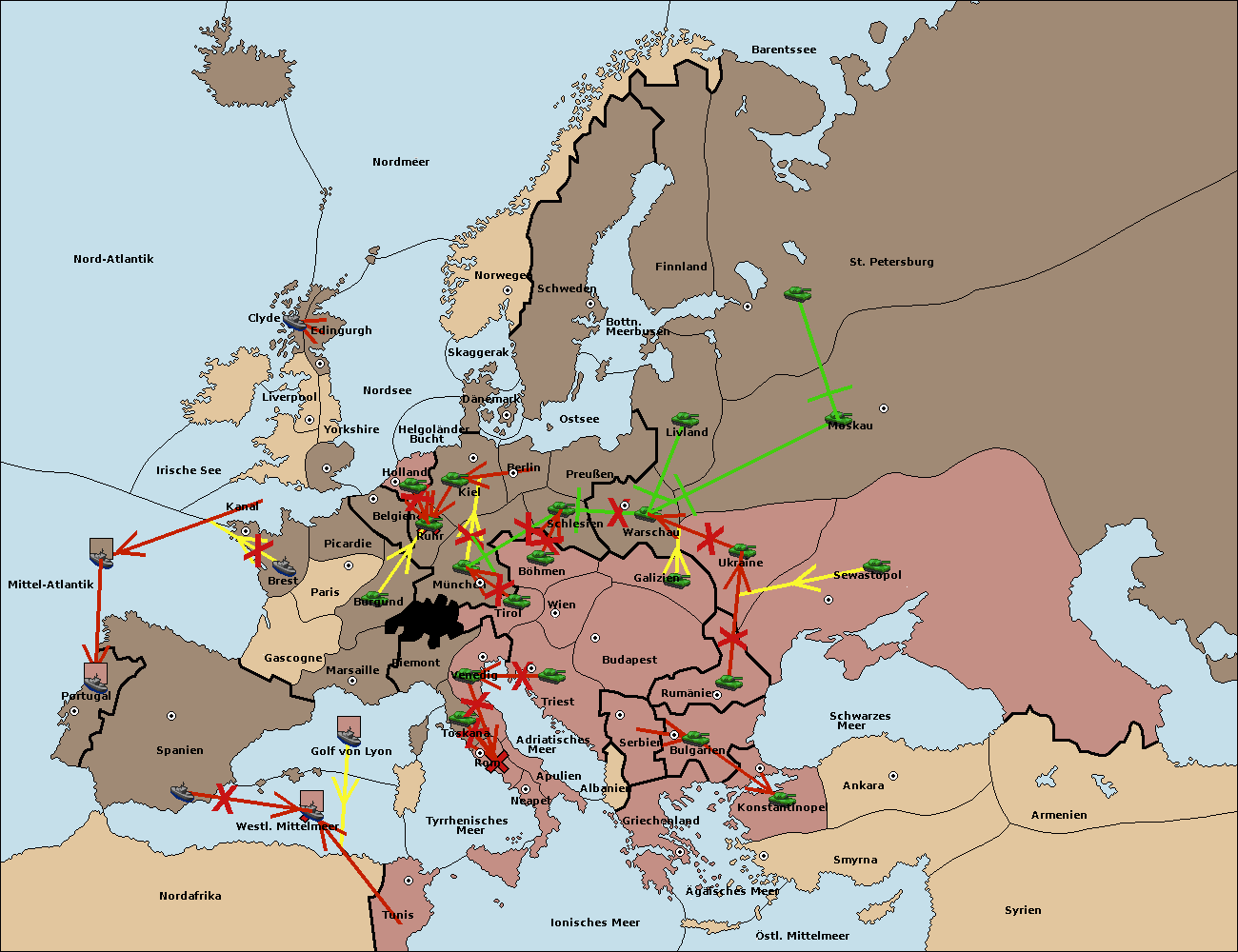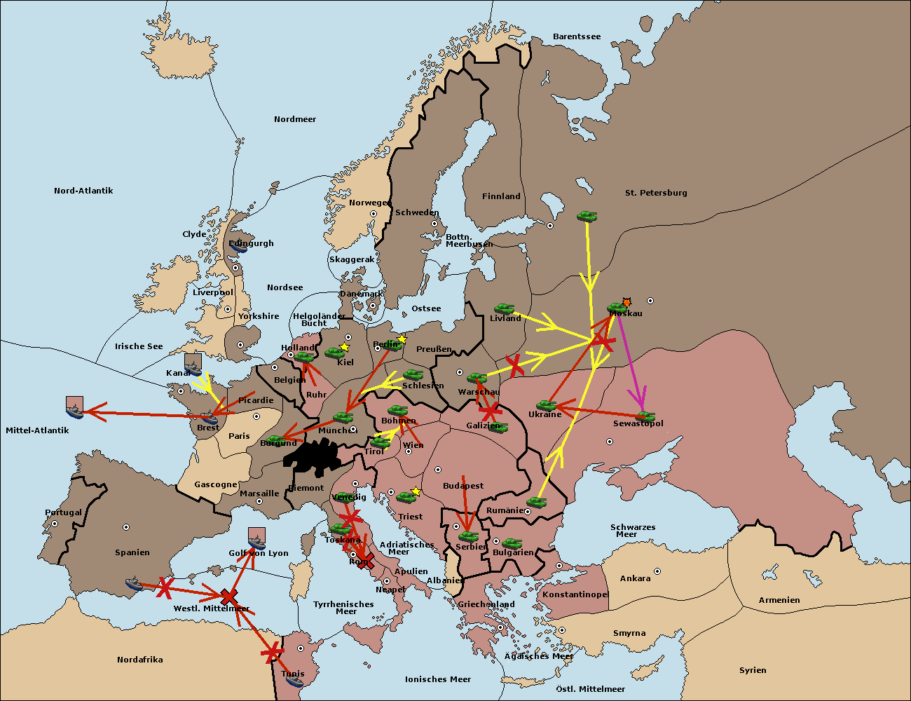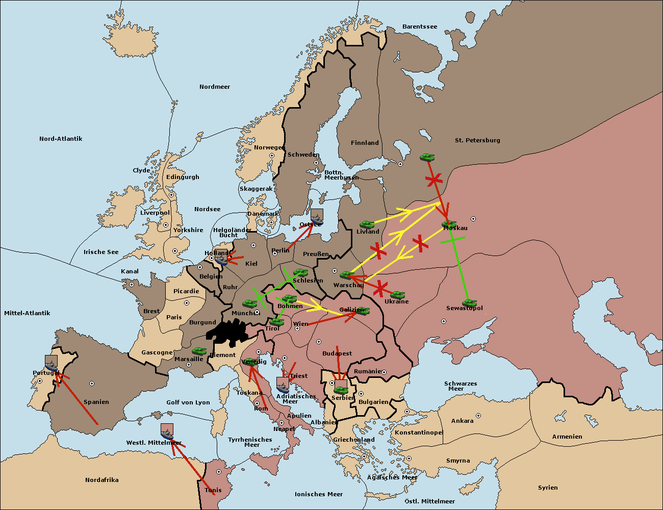 • Die Armee in Warschau support move nach Moskau von St. Petersburg. (gescheitert)