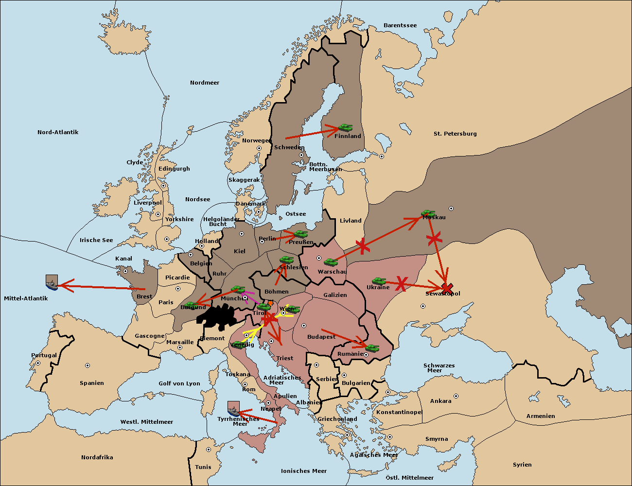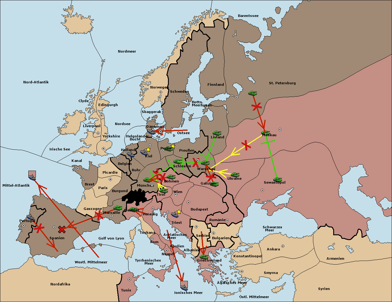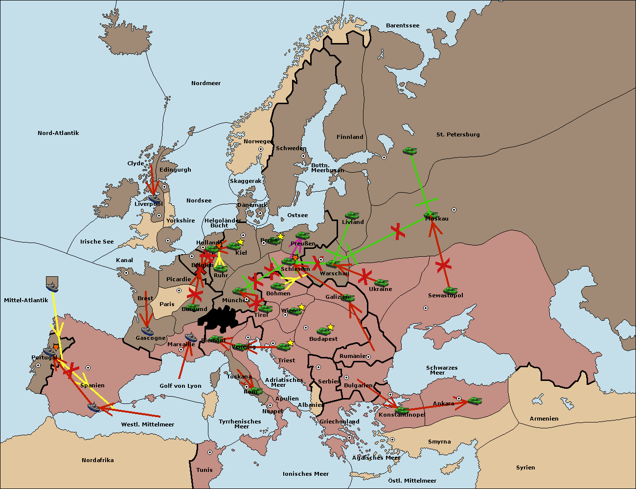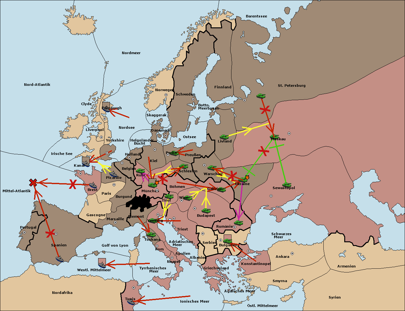 • Die Armee in Warschau support move nach Moskau von St. Petersburg. (gescheitert)