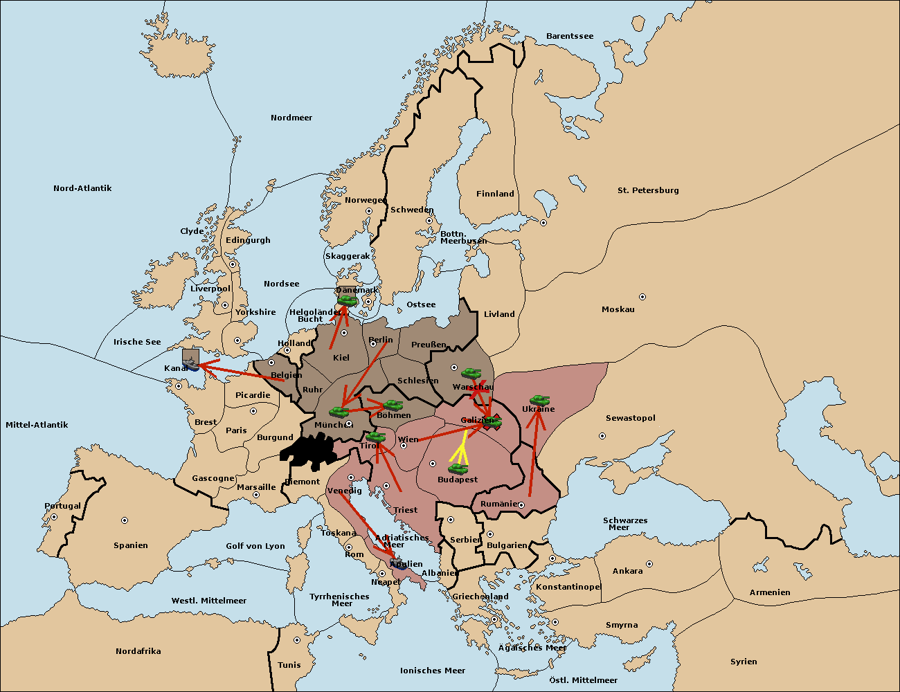 • Die Armee in Budapest support move nach Galizien von Wien.