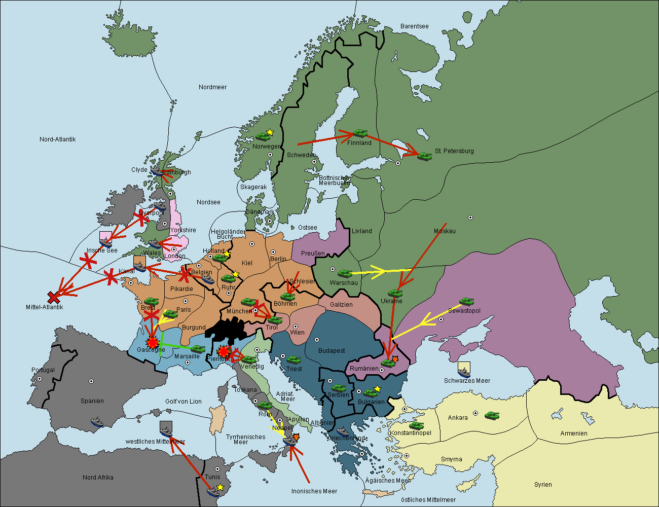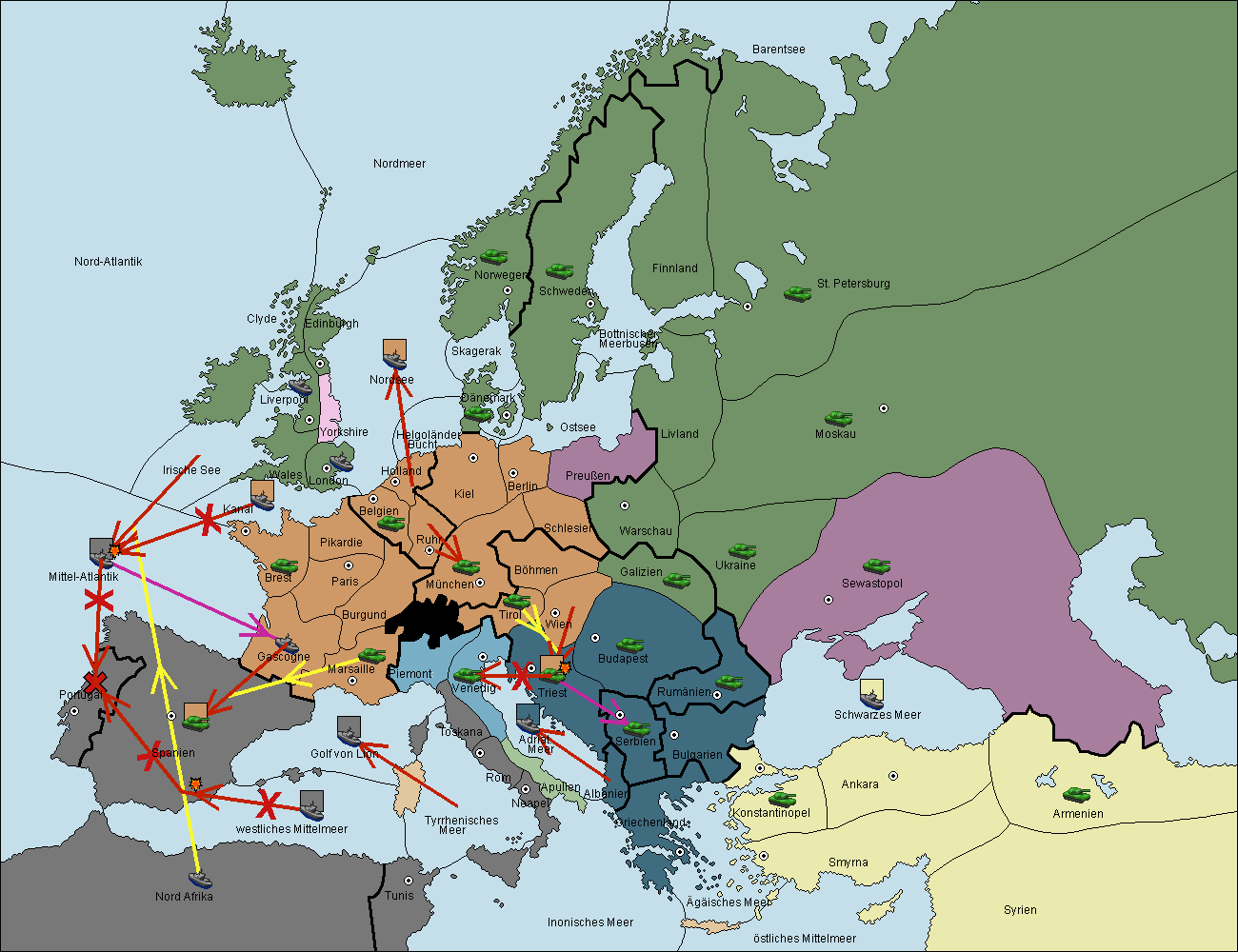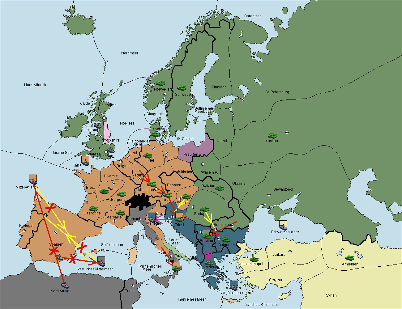 • Die Flotte in Spanien (Südküste) move nach westl. Mittelmeer.