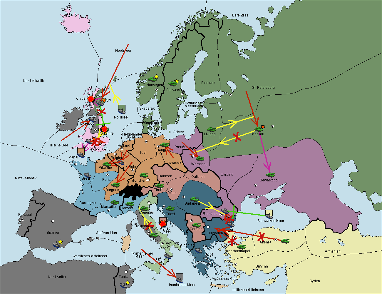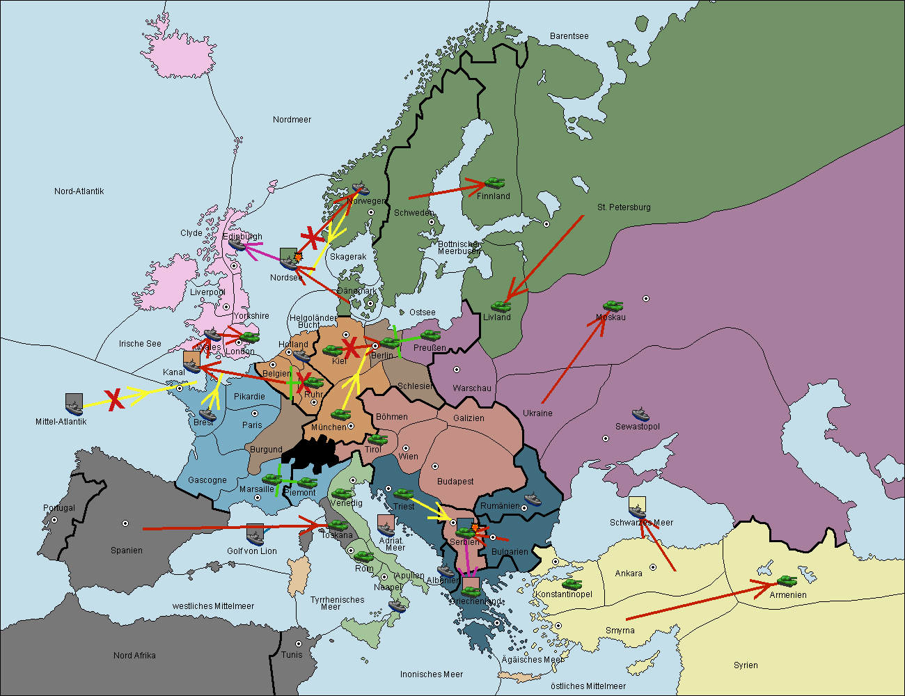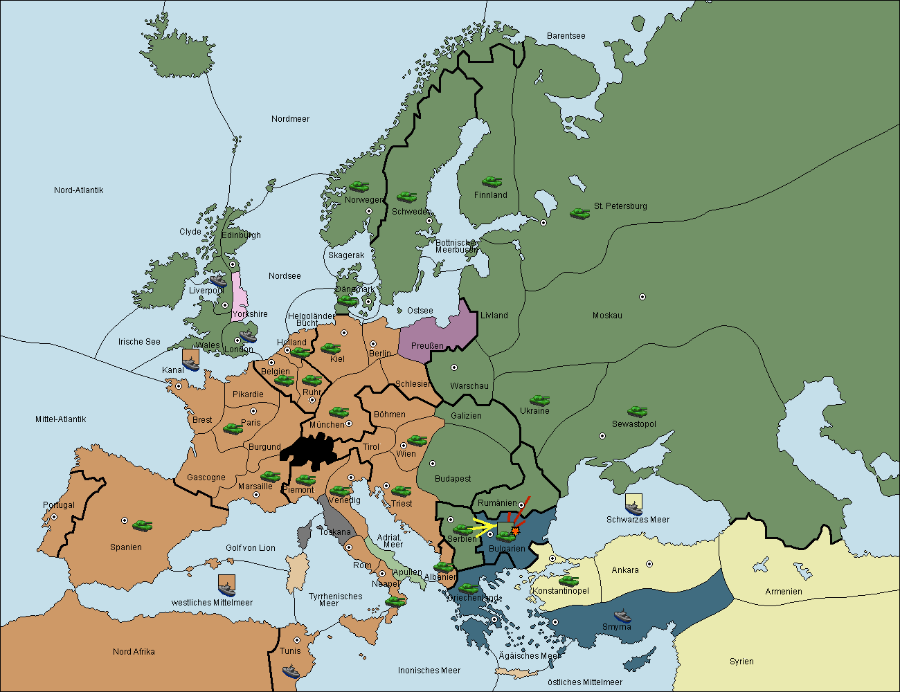 • Die Armee in Bulgarien wird zerstörtFlotte in Bulgarien gebaut.