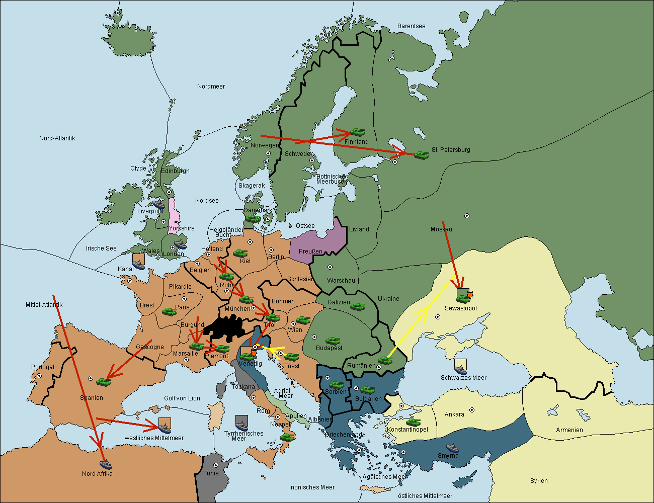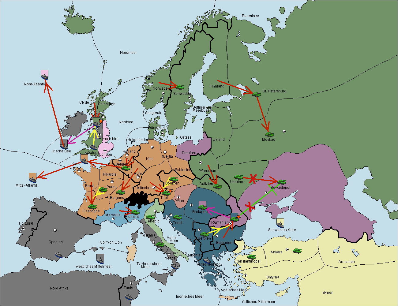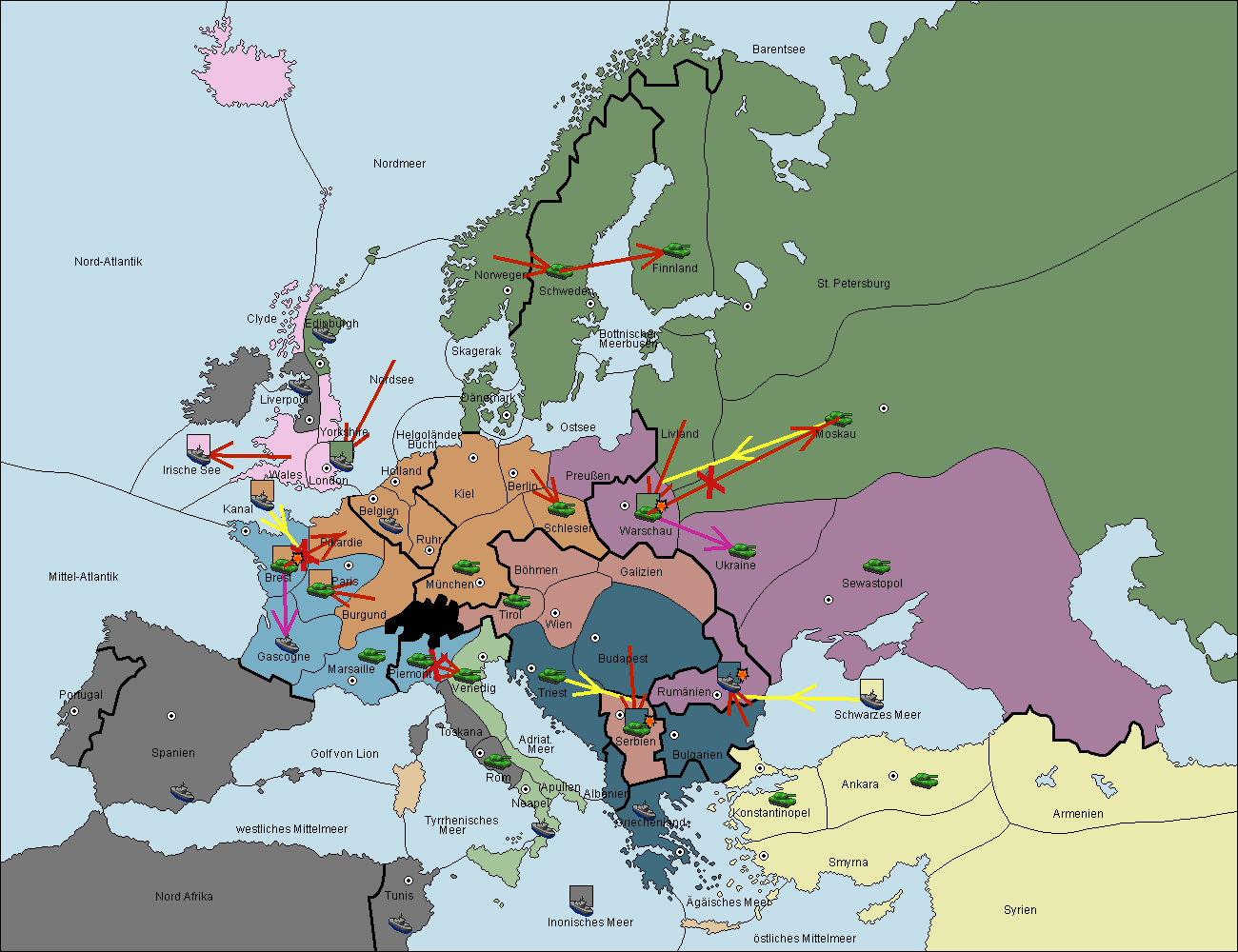 • Die Armee in Bulgarien wird zerstörtFlotte in Bulgarien gebaut.