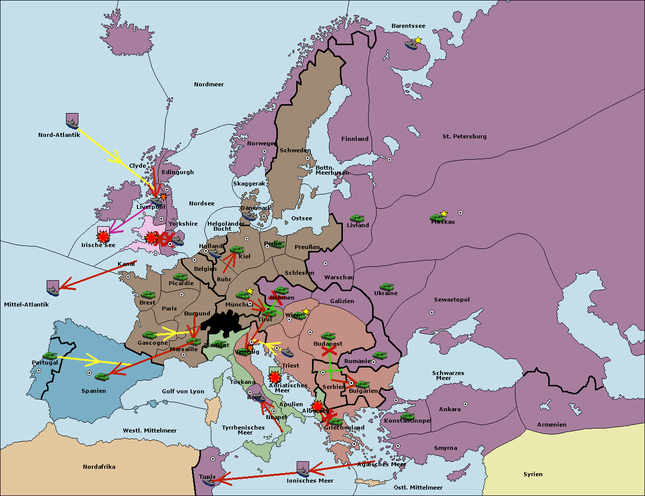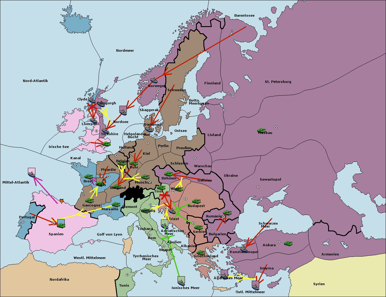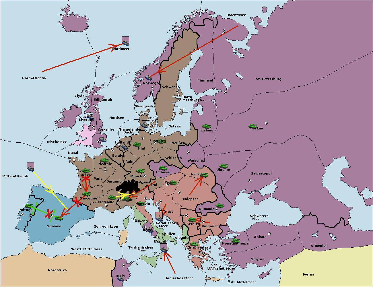 • Die Flotte in St. Petersburg (Nordküste) move nach Norwegen.