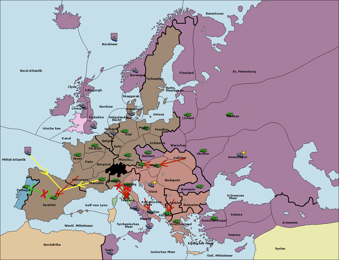 • Die Armee in Venedig support move nach Toskana von Piemont.