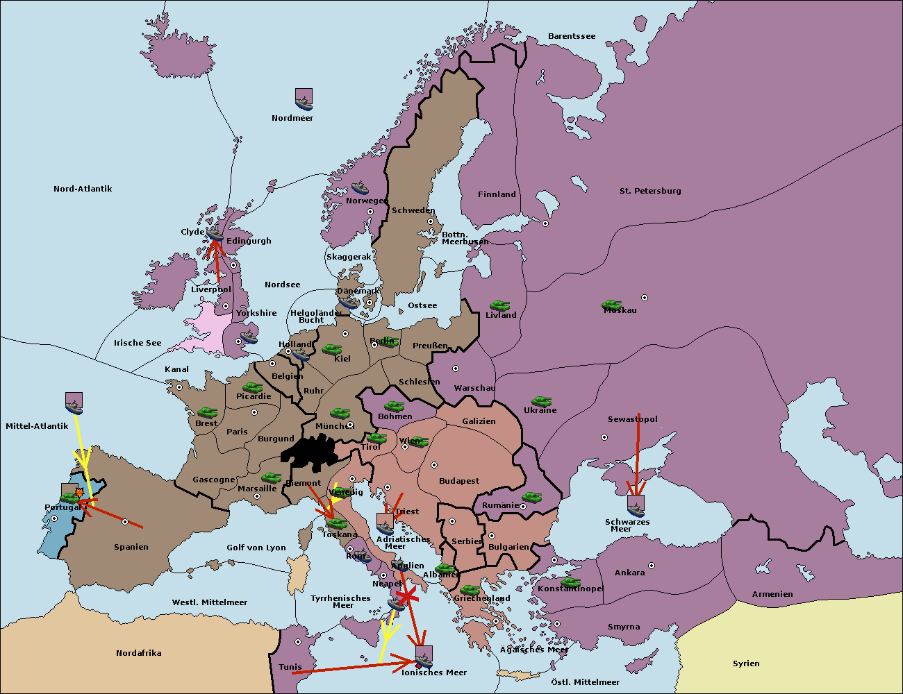 • Die Flotte in Mittel-Atlantik support move nach Portugal von Spanien.